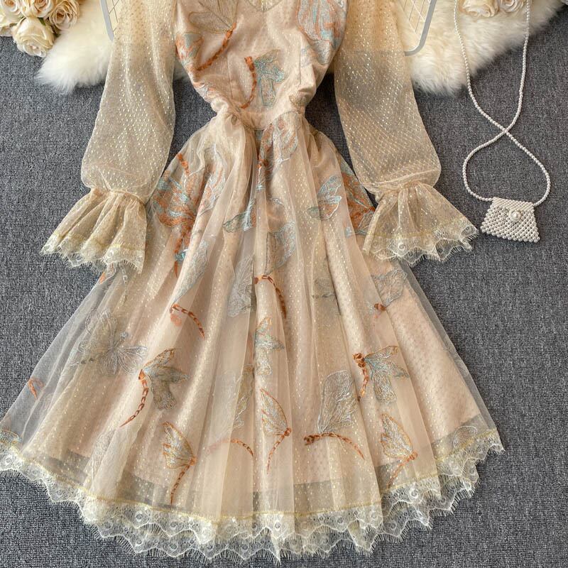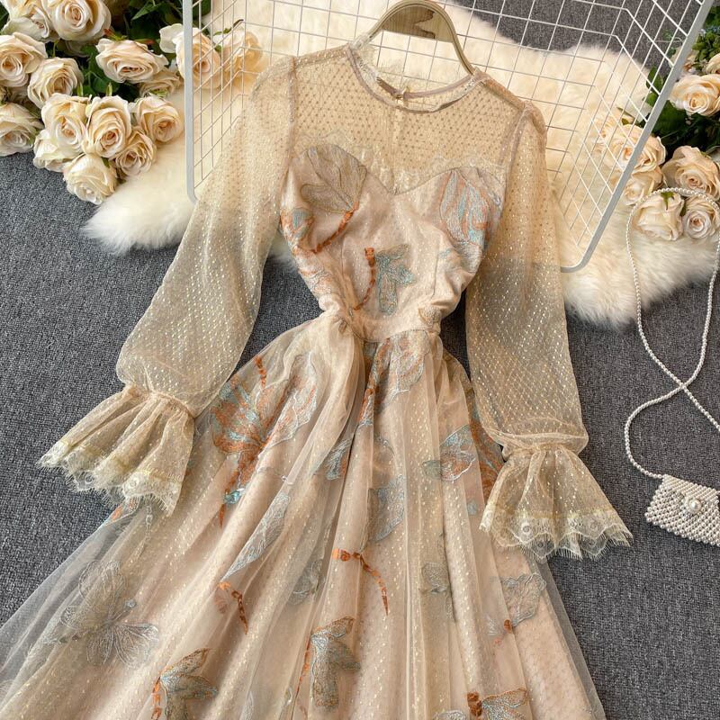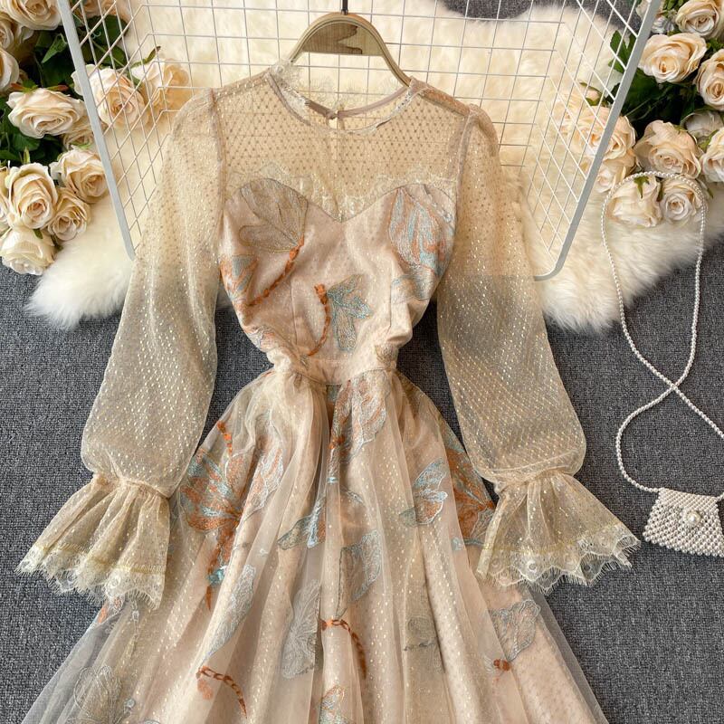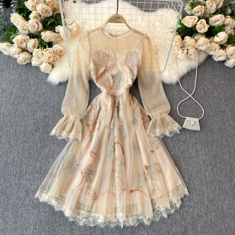 Palace style dress 2021 new spring dress retro heavy industry embroidery small dress ladies high-end light luxury women's clothing レトロ レース 刺繍 スプリング 春物 lyxaj99560380735