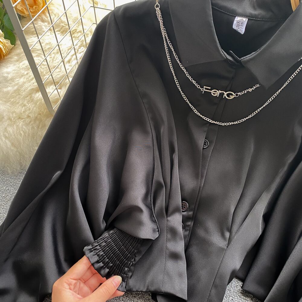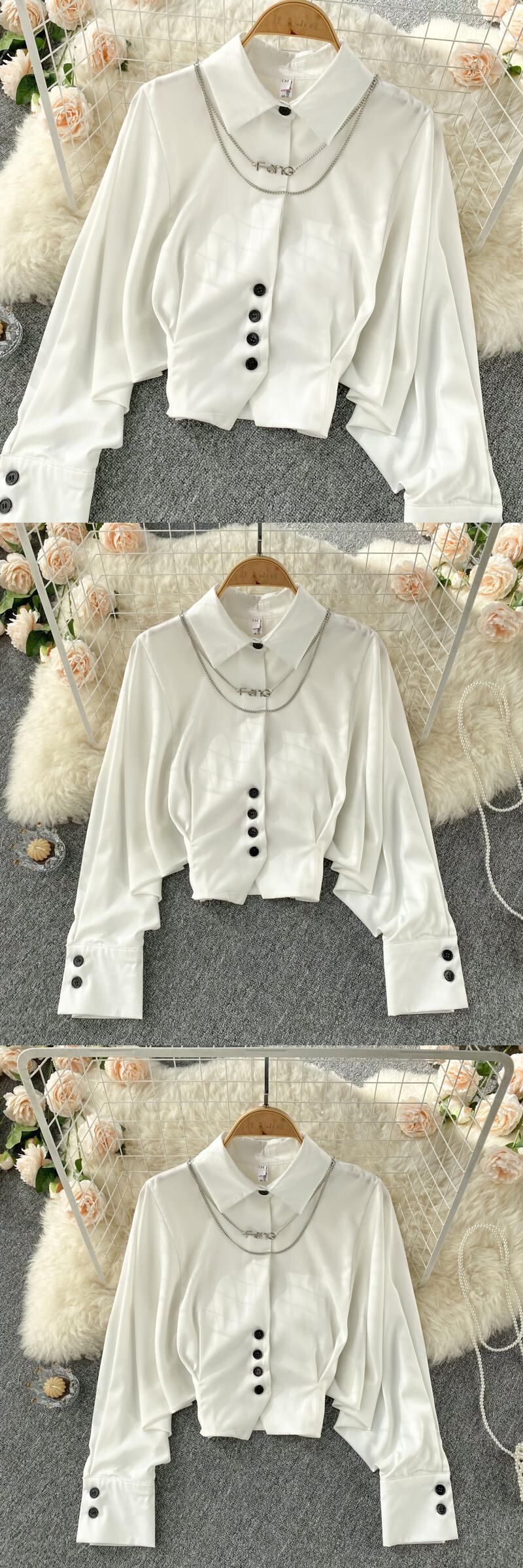 French niche chic top waist short shirt with a sense of design niche lapel slim bat sleeve shirt ショート スリム lyxaj58662423169
