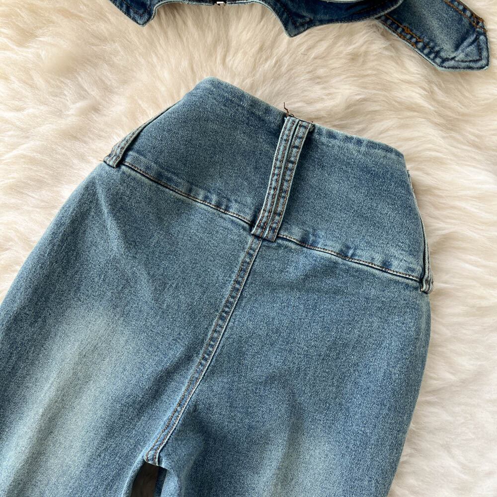 Fried street denim suit women's spring and summer new Hong Kong style retro straight wide-leg pants niche suspender top two-piece set レトロ ストリート スプリング 春物 サマー 夏物 lyxaj42613921144