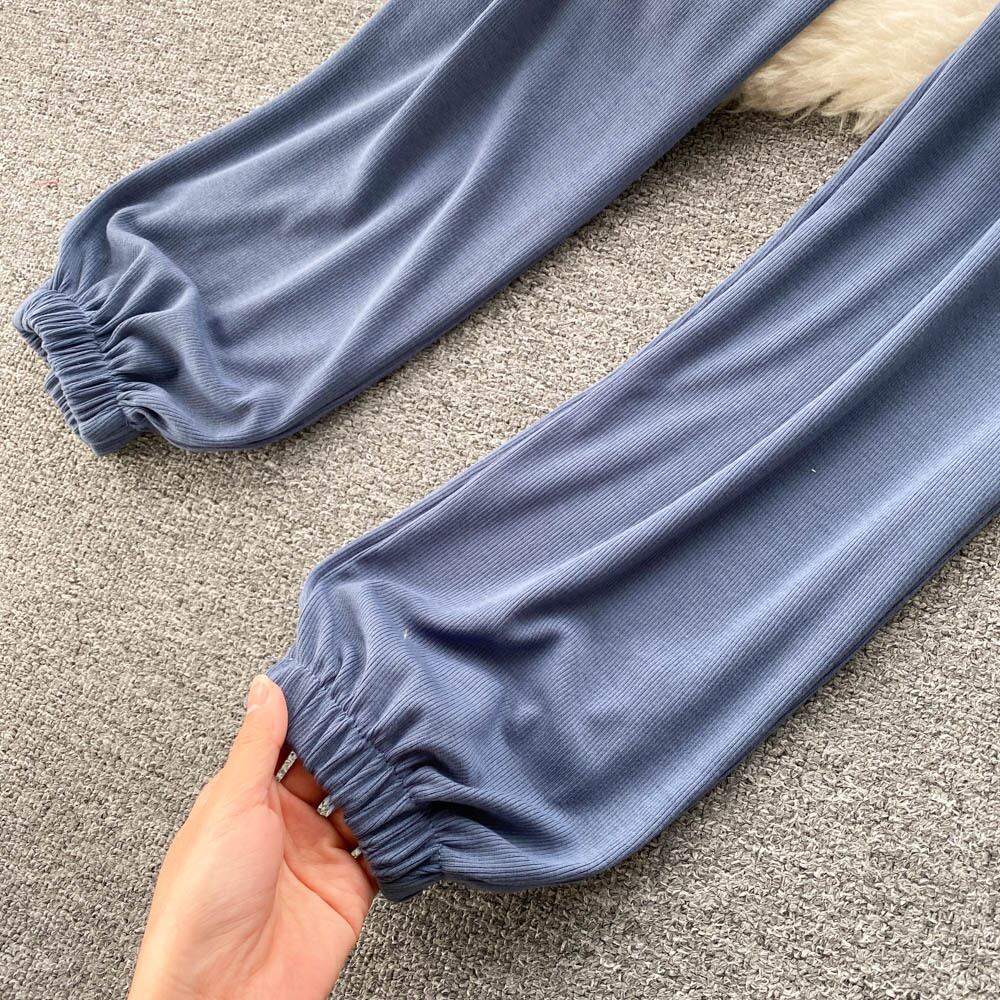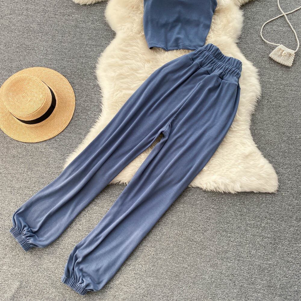 Fried street casual fashion sports suit female summer slanted shoulder camisole elastic waist leggings casual pants two-piece set カジュアル ストリート エラスティック 伸縮 サマー 夏物 lyxaj12257876445