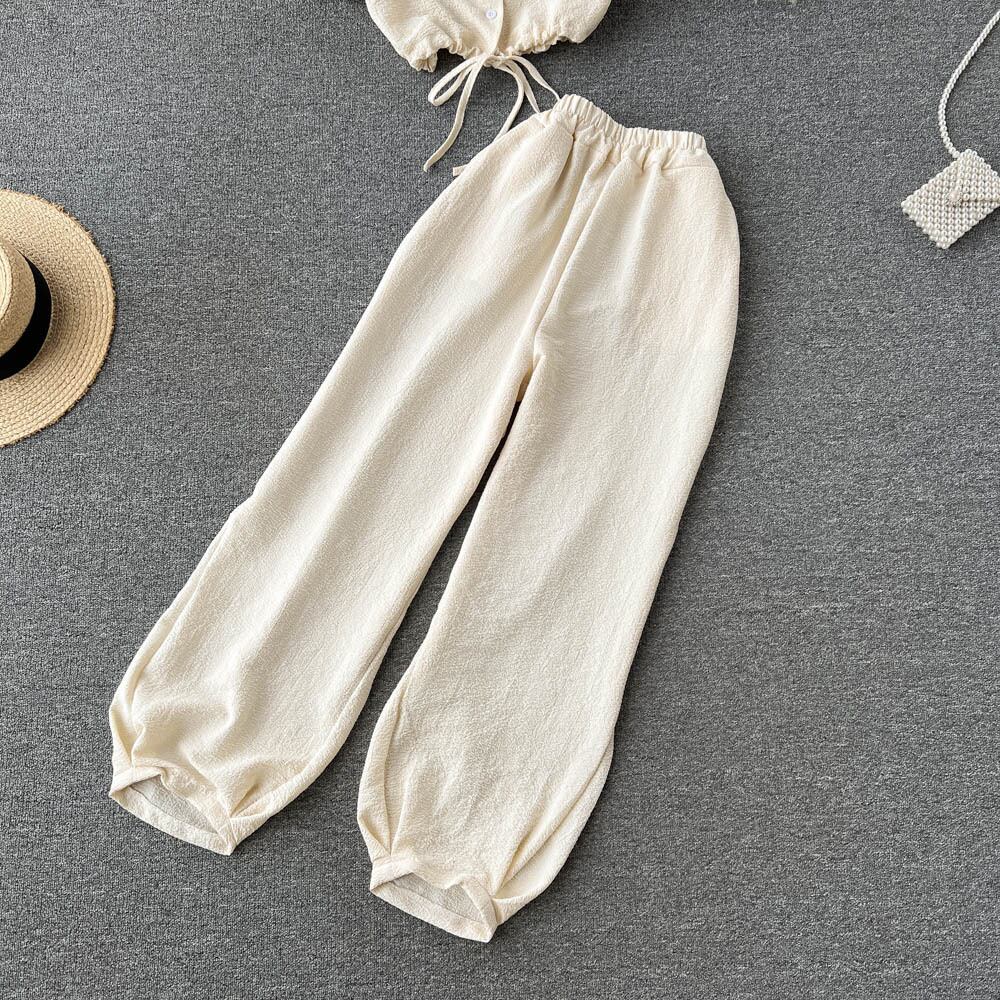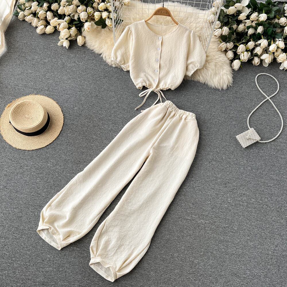 Hong Kong style suit short lace short-sleeved top women's loose beam feet show thin all-match casual harem pants two-piece trendy ショート レース カジュアル lyxaj67947435072