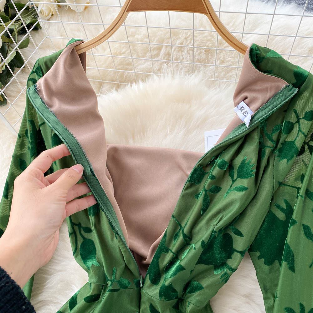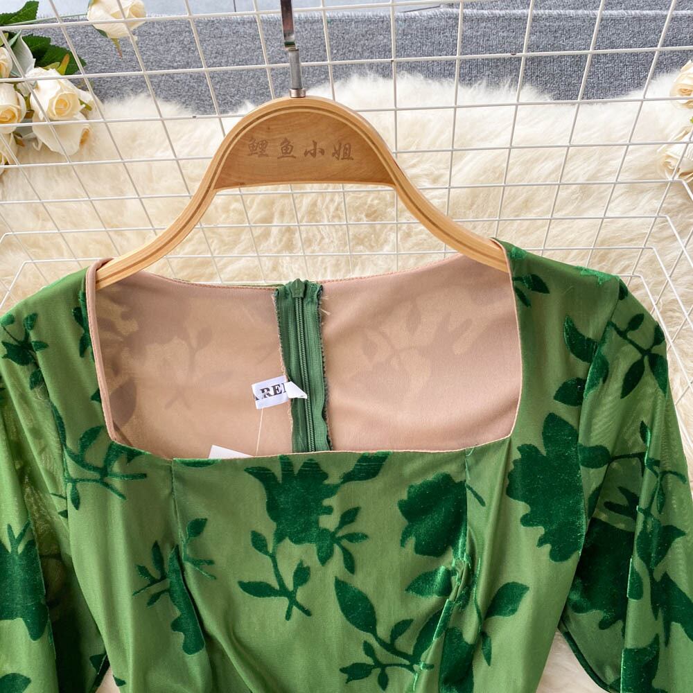 2022 spring new high-end temperament retro square collar waist slim dress printing elegant midi skirt women レトロ エレガント スプリング 春物 スカート スリム スクウェア lyxaj75796470350