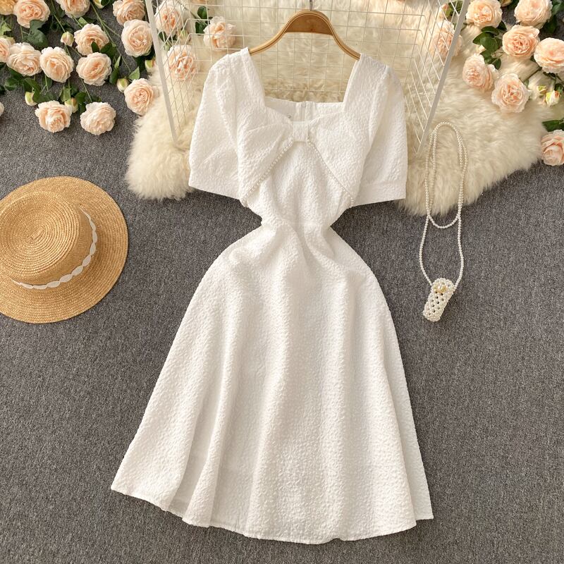 Jacquard short-sleeved French Mori princess dress 2022 summer new three-dimensional bow waist fairy dress trendy リボン サマー 夏物 lyxaj78768754856