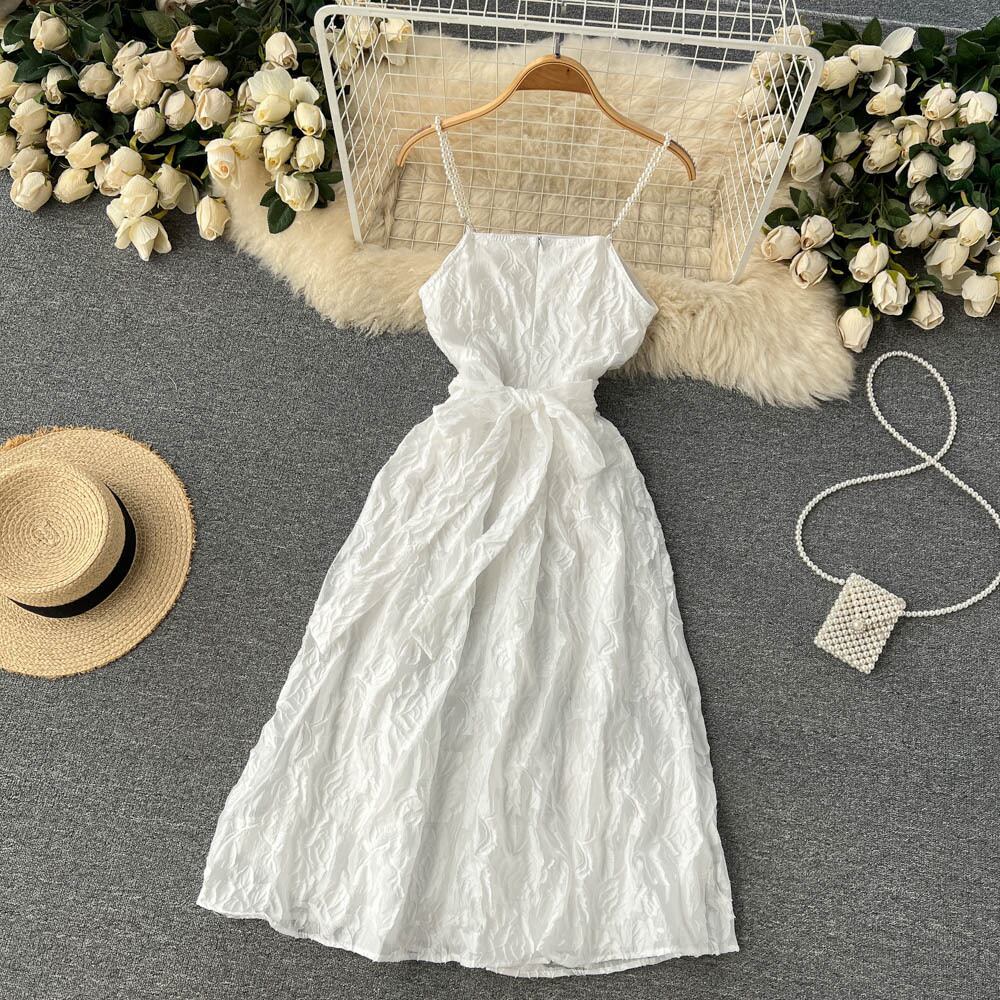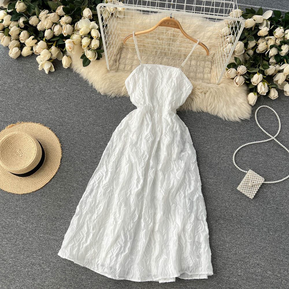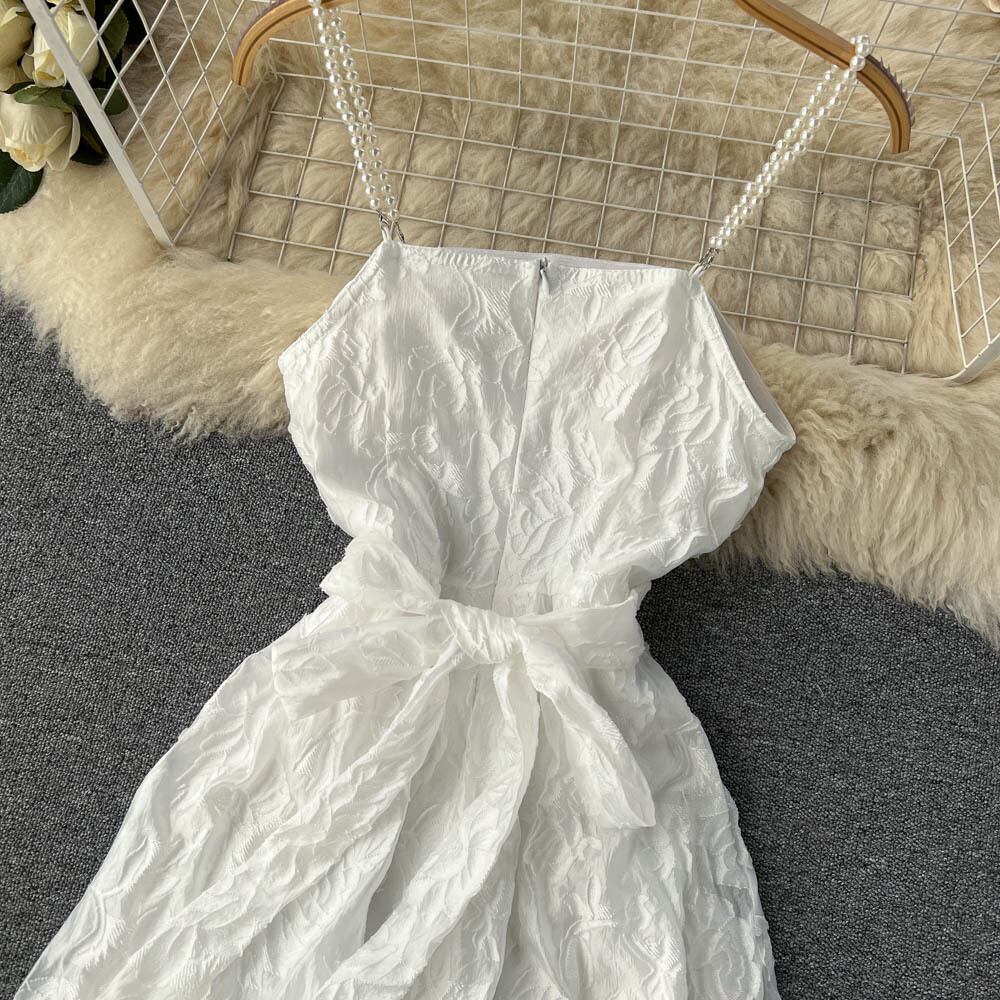 version of the retro French sexy fairy pearl strap dress white bottoming skirt is thin and sweet temperament skirt ホワイト レトロ 大人ガーリー スウィート キュート カジュアル スカート パール 真珠 lyxaj34393805179