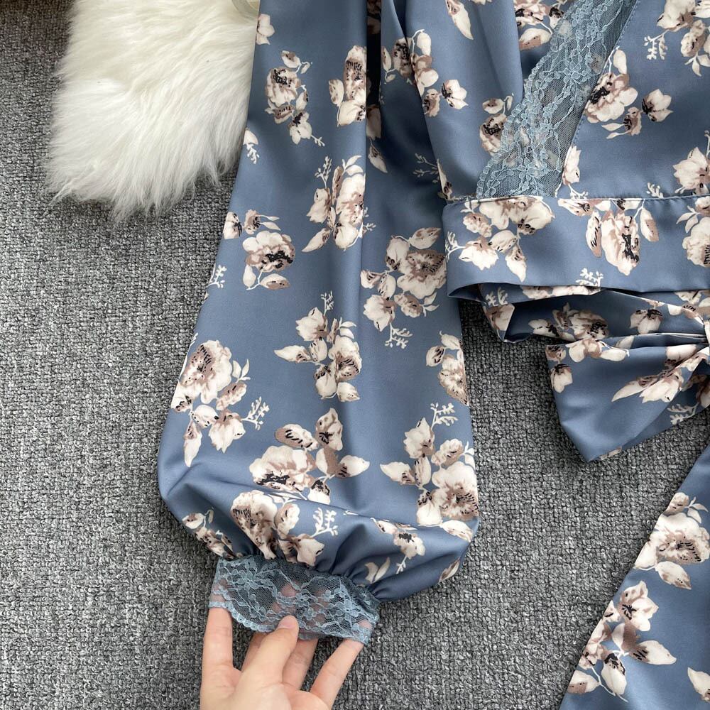 French lace edge v-neck floral shirt women's design sense niche retro straps waist short temperament top trendy ショート レトロ レース 花柄 Vネック lyxaj26323431350