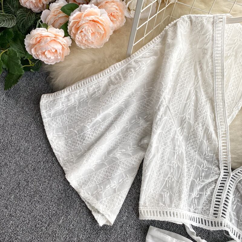 Europe and the United States ins sexy deep V-neck short top women's summer dress scheming hollow back tie waist holiday style shirt ショート サマー 夏物 Vネック lyxaj69928137843