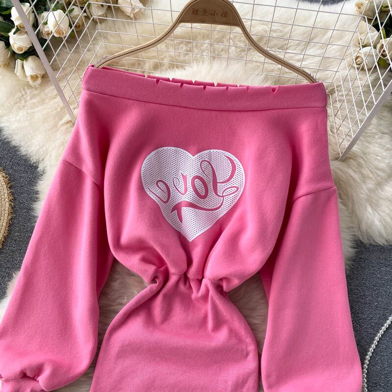 Autumn new design print long-sleeved sweater one-shoulder sexy bag hip skirt slim dress female short skirt ショート ロング オータム 秋物 スカート スリム lyxaj38703750423