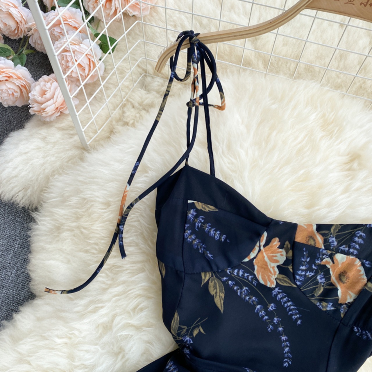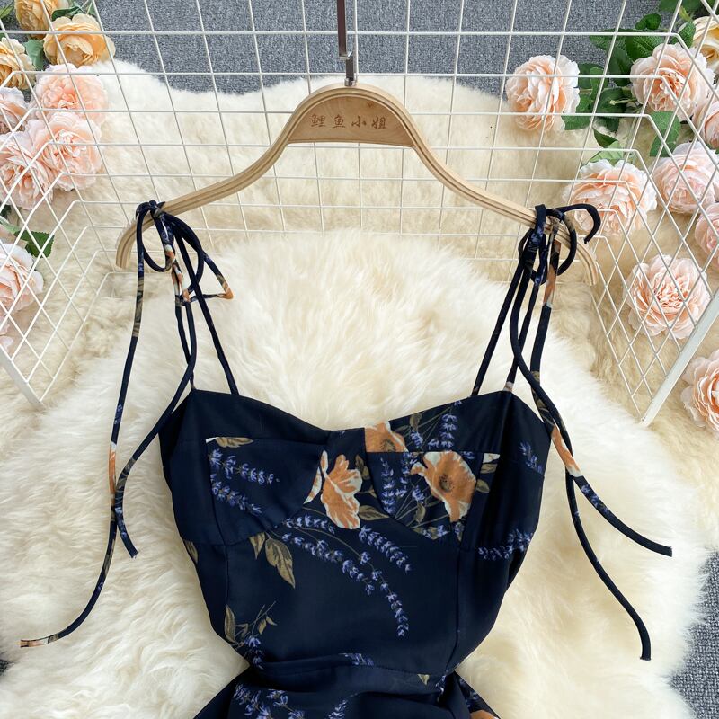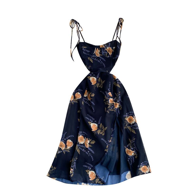 Seaside Resort Dress Summer Print Slim Fit Mid-Length Chiffon Sling Skirt Split Beach Skirt シフォン サマー 夏物 ビーチ スカート スリム lyxaj92512396495