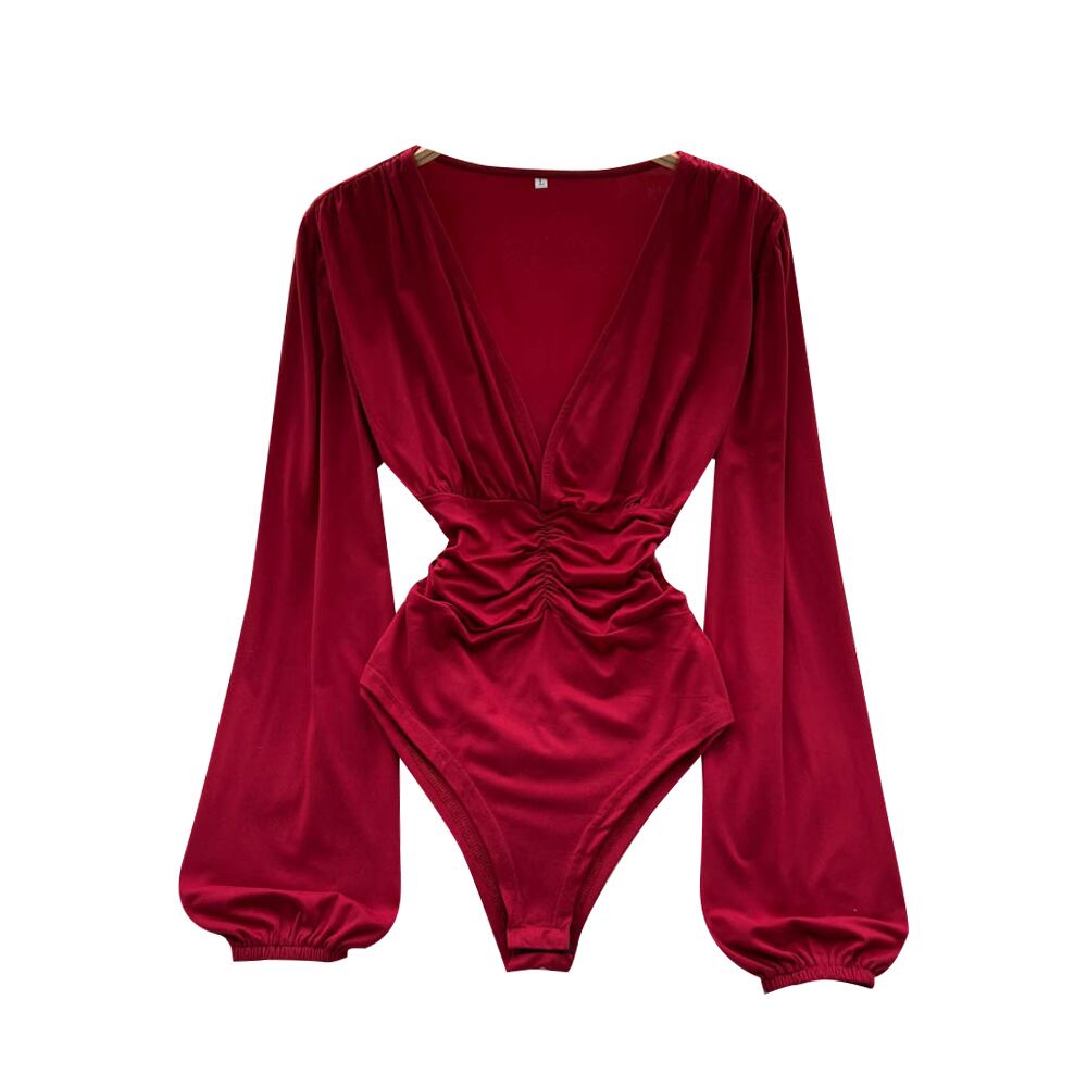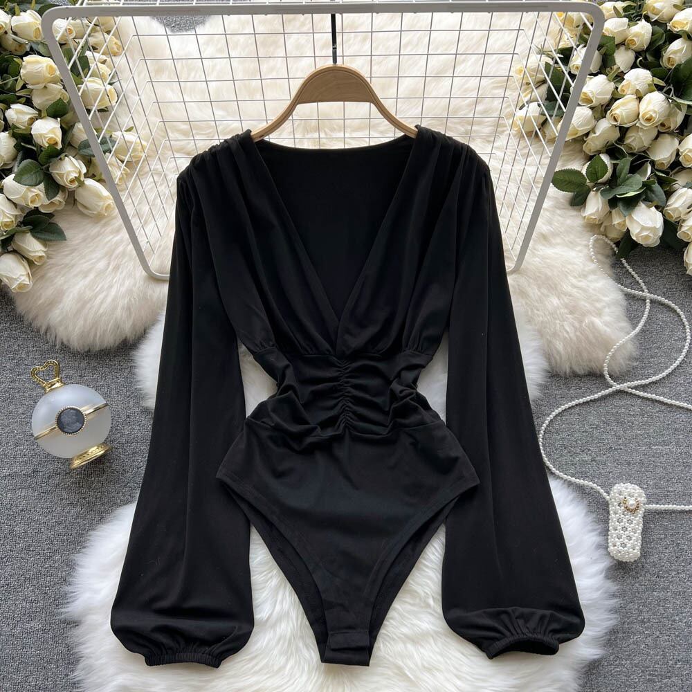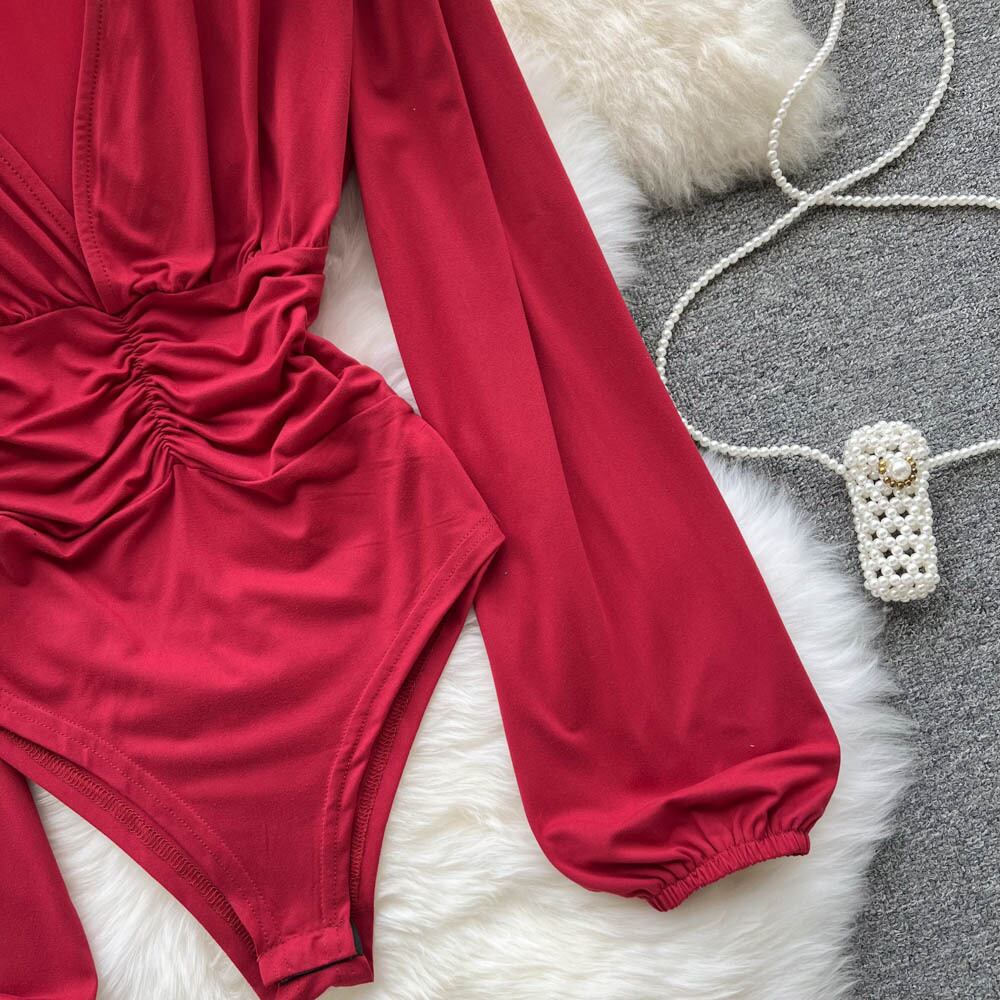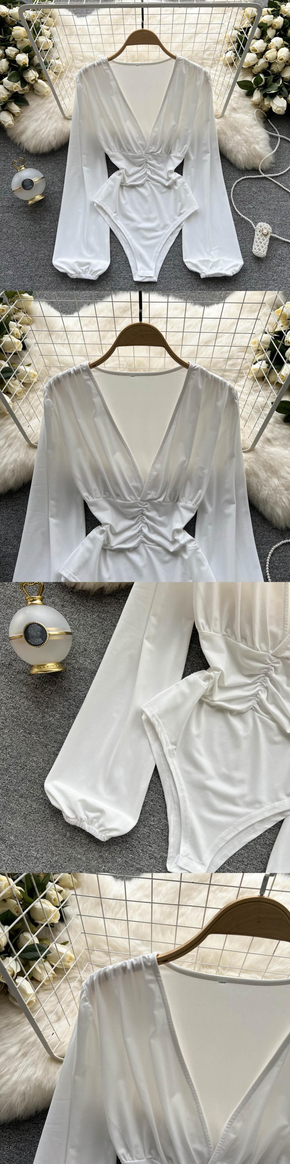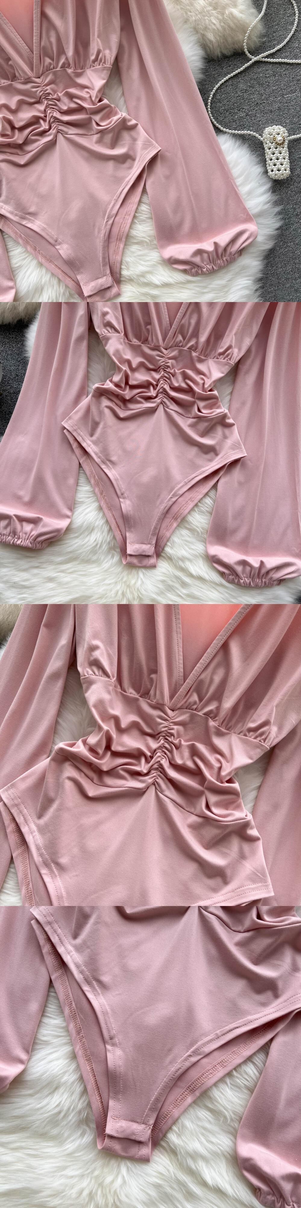 Crotch T-shirt high k jumpsuit women's spring new design sexy pure desire long-sleeved pleated top ロング プリーツ スプリング 春物 Tシャツ ピュア lyxaj59197397426