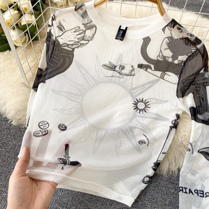 2022 new lace shirt long-sleeved T-shirt women's mesh bottoming shirt with a eign style and a metal careful machine top ロング レース メッシュ Tシャツ lyxaj46173181133