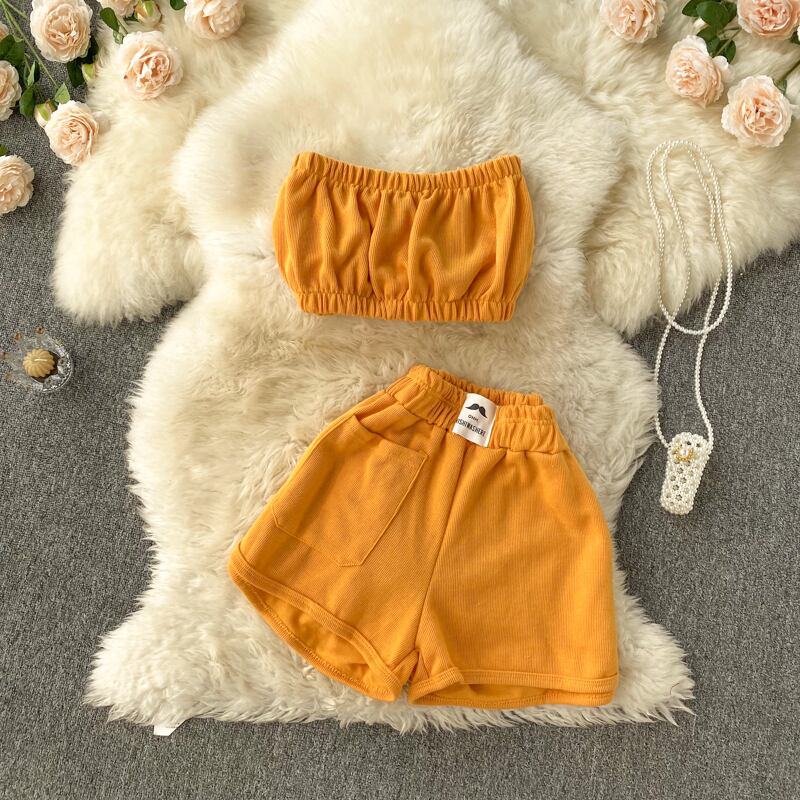 scheming sexy super short one word neck short tube top top casual high waist shorts two-piece suit female trendy ハイウェスト ショート カジュアル ショーツ ブルマー lyxaj36077275372