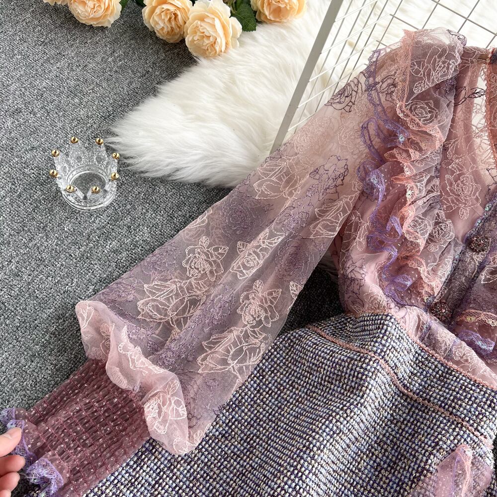 Palace style ladies temperament perspective mesh embroidery French dress stitching lotus leaf edge waist slimming A-line skirt レース 刺繍 メッシュ スカート Aライン ステッチ lyxaj78074307409