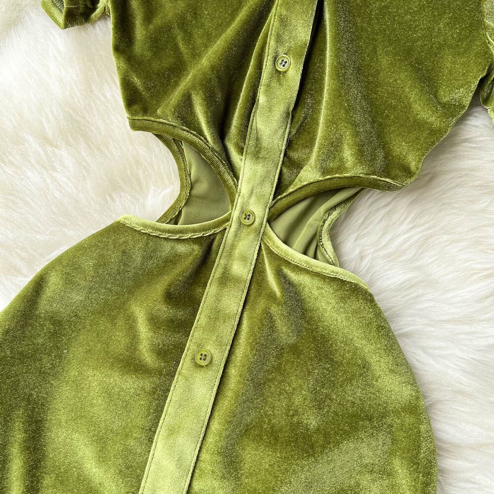 Early spring new pleated waist POLO collar single-breasted velvet short-sleeved dress pure desire sexy skirt プリーツ スプリング 春物 スカート ピュア lyxaj69674030211