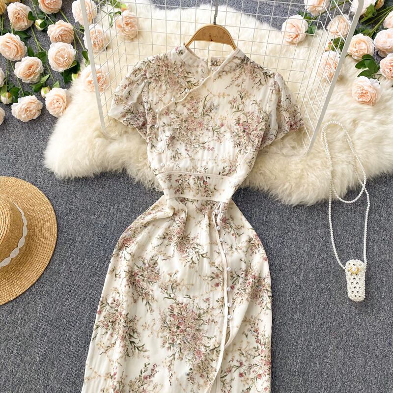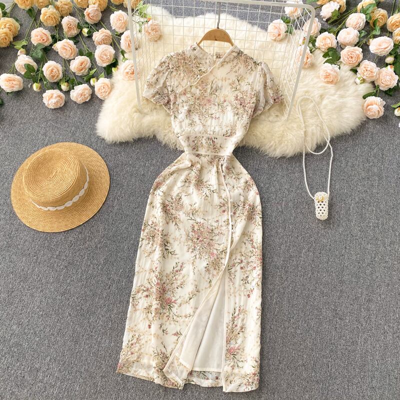 Temperament ladies pure desire A-line skirt female version summer French retro Western style design sense stand collar cheongsam dress レトロ サマー 夏物 スカート Aライン ピュア lyxaj70209619634