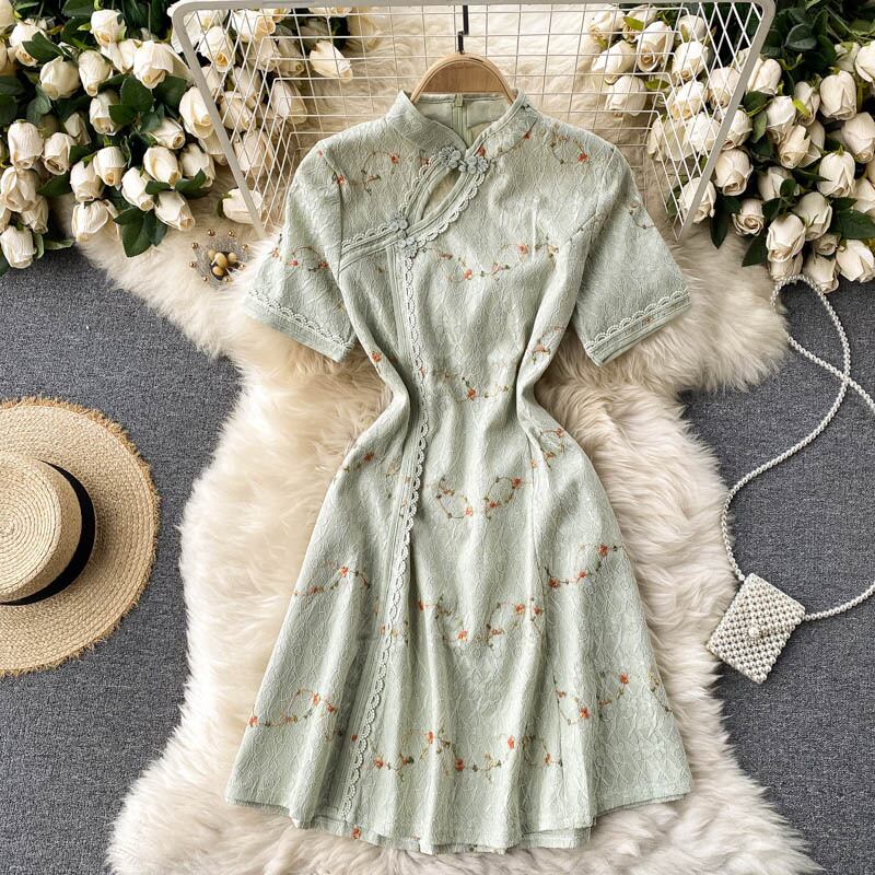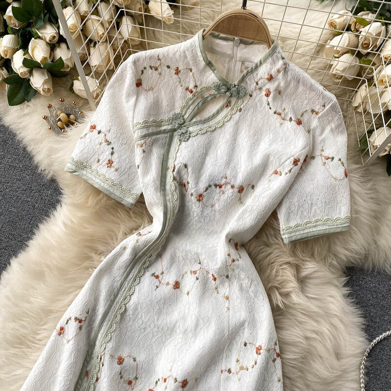 Girly feeling young cheongsam improved version dress women's spring new scheming hollow small stand-up collar slim skirt スプリング 春物 スカート スリム lyxaj27527865924