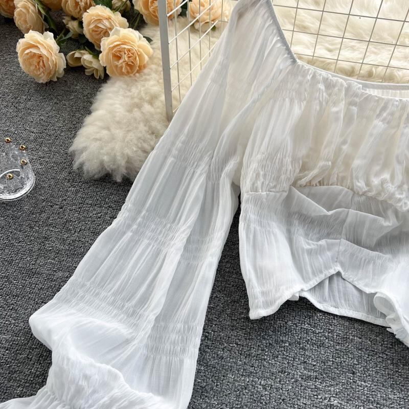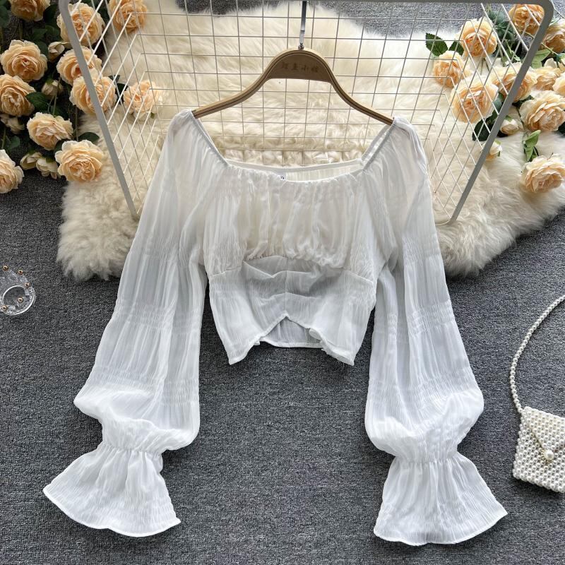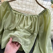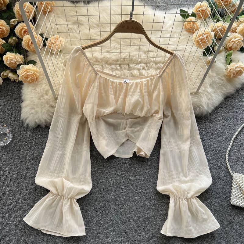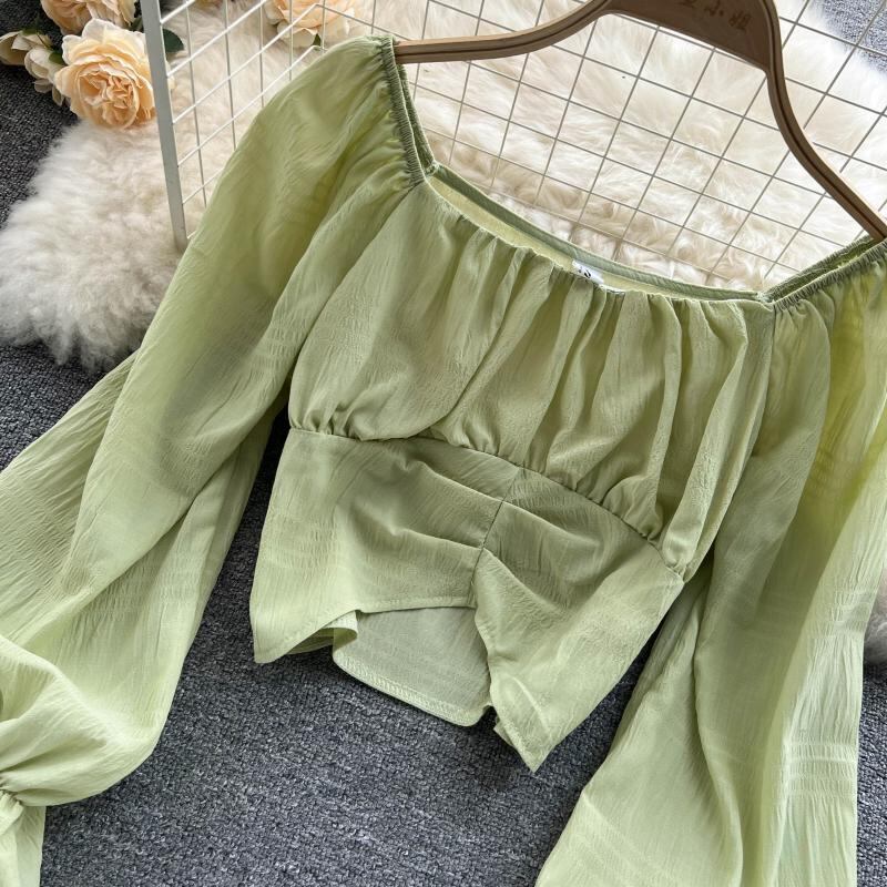 2022 spring new version of the French temperament square collar trumpet puff sleeves solid color fairy all-match long-sleeved top tide ロング スプリング 春物 ソリッドカラー スクウェア lyxaj73251565156
