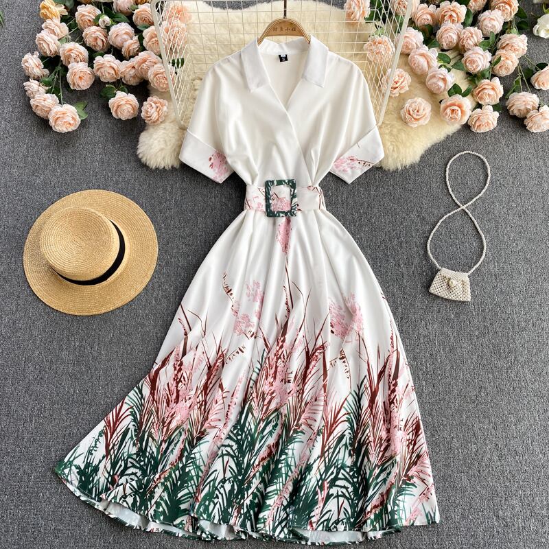 Light familiar style dress 2021 new summer dress ladies suit collar temperament slim mid-length design print skirt サマー 夏物 スカート スリム lyxaj4140847664