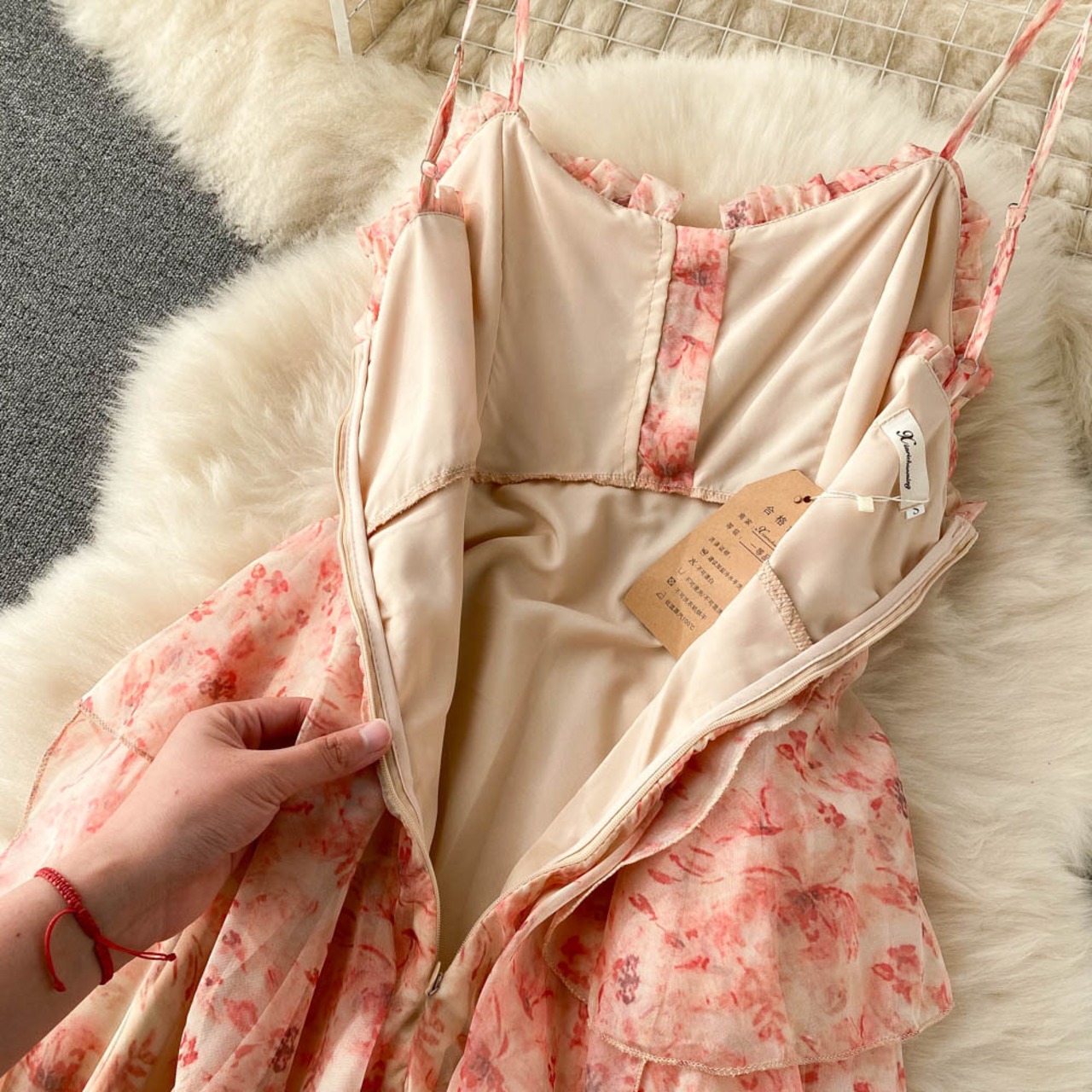 Sweet and gentle wind French suspender fairy dress fashion strap design floral long dress seaside holiday dress ロング 大人ガーリー スウィート キュート カジュアル 花柄 lyxaj34906739960