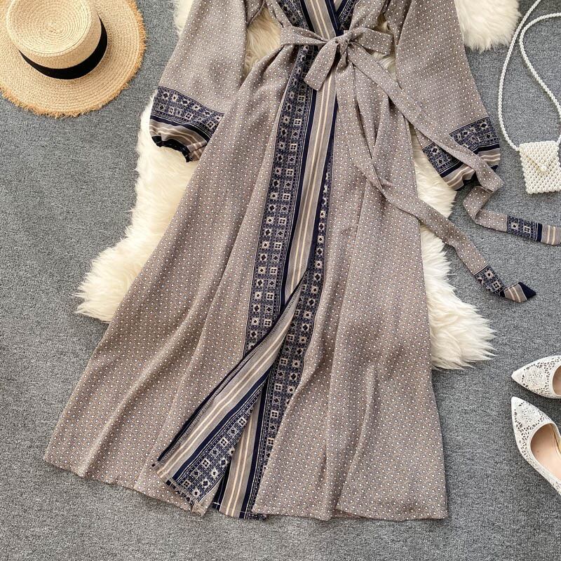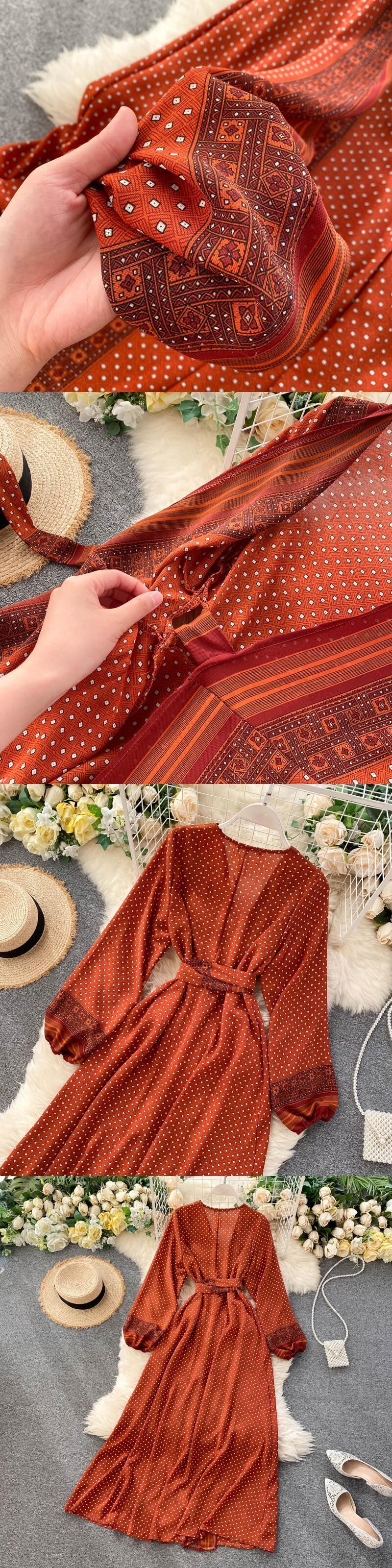 Travel po vacation dress female 2020 new autumn thin chiffon retro print lace waist slim long skirt ロング シフォン レトロ レース オータム 秋物 スカート スリム lyxaj98903933375