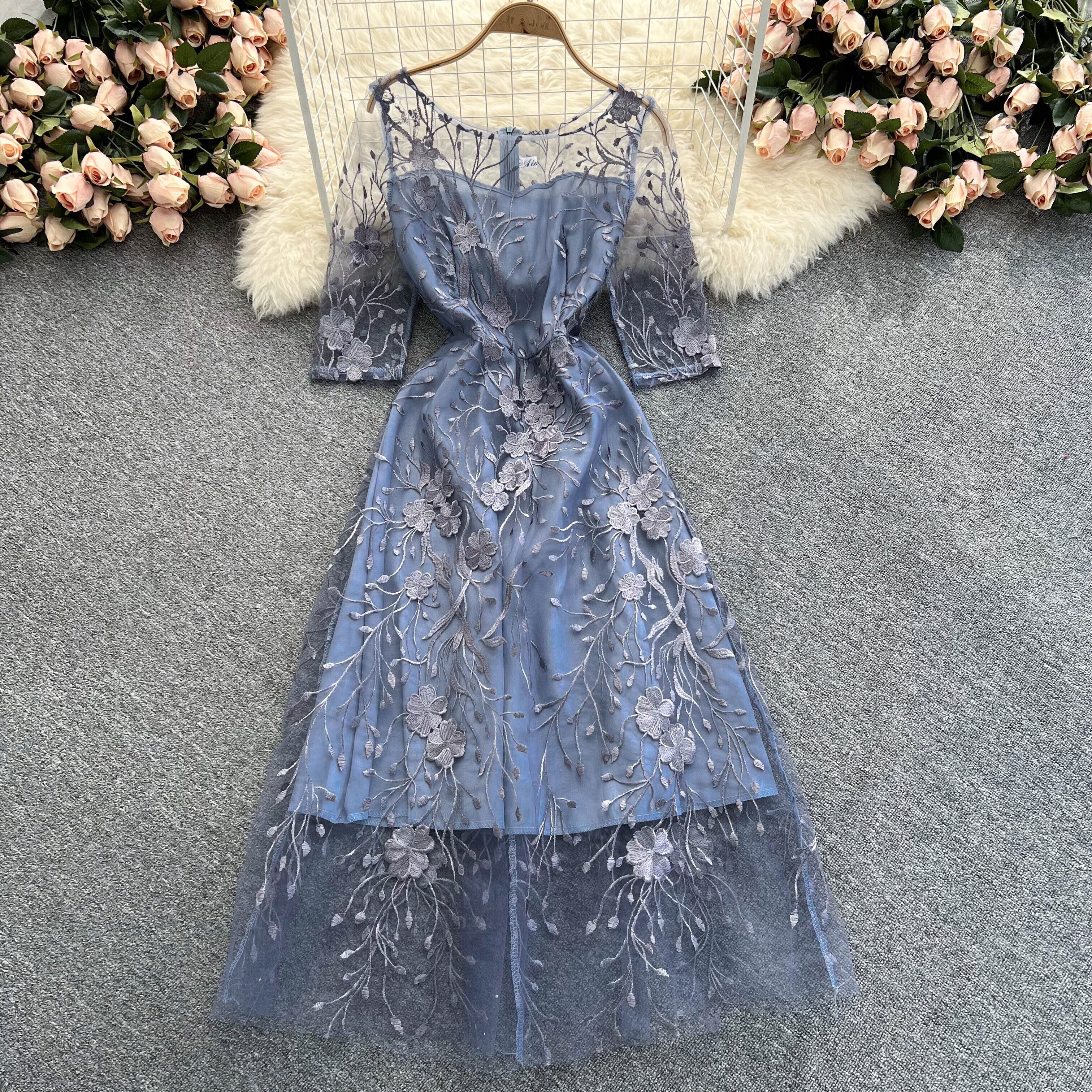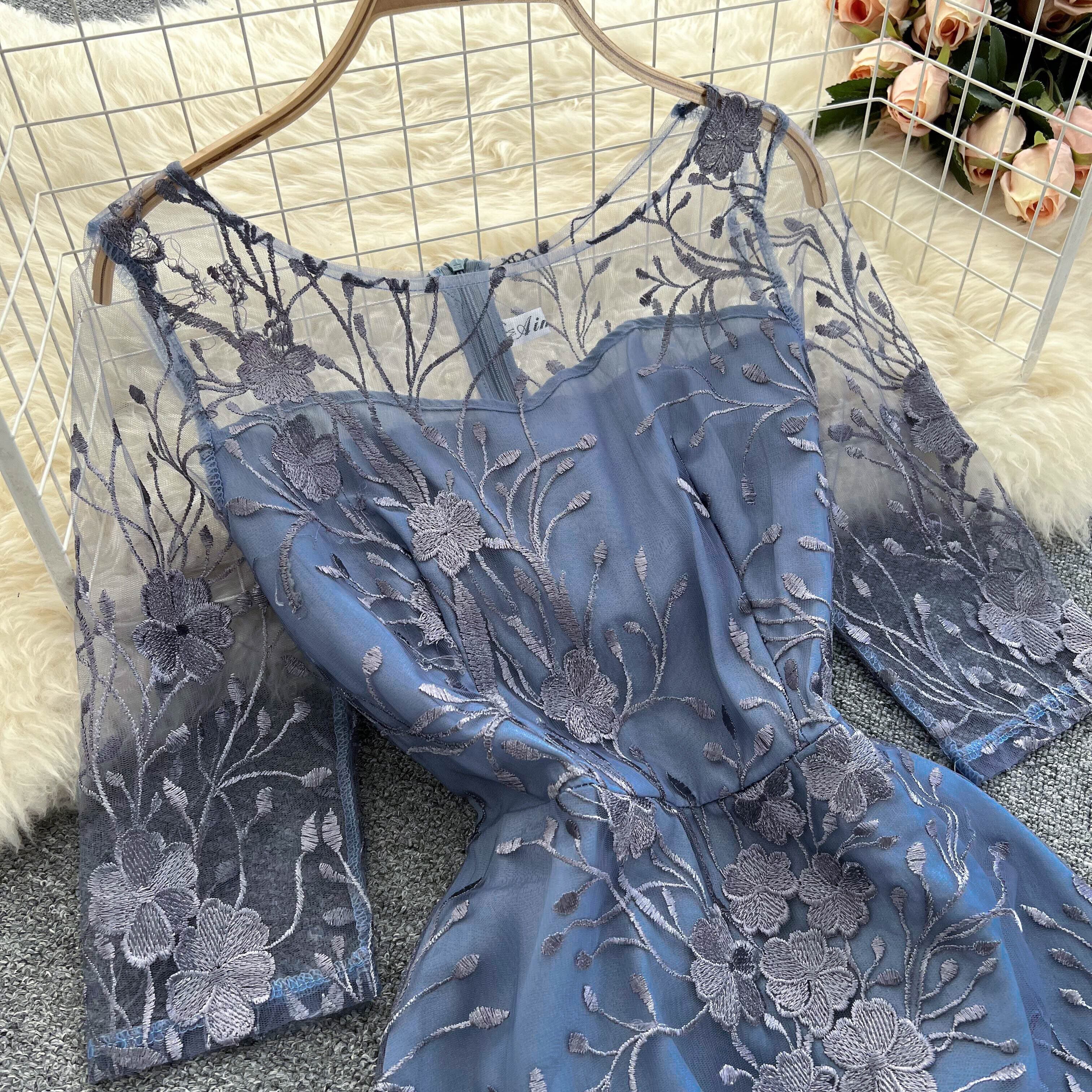 lady style retro heavy industry embroidery dress skirt 2022 spring new perspective mesh dress female レトロ 刺繍 スプリング 春物 メッシュ スカート lyxaj69978838921