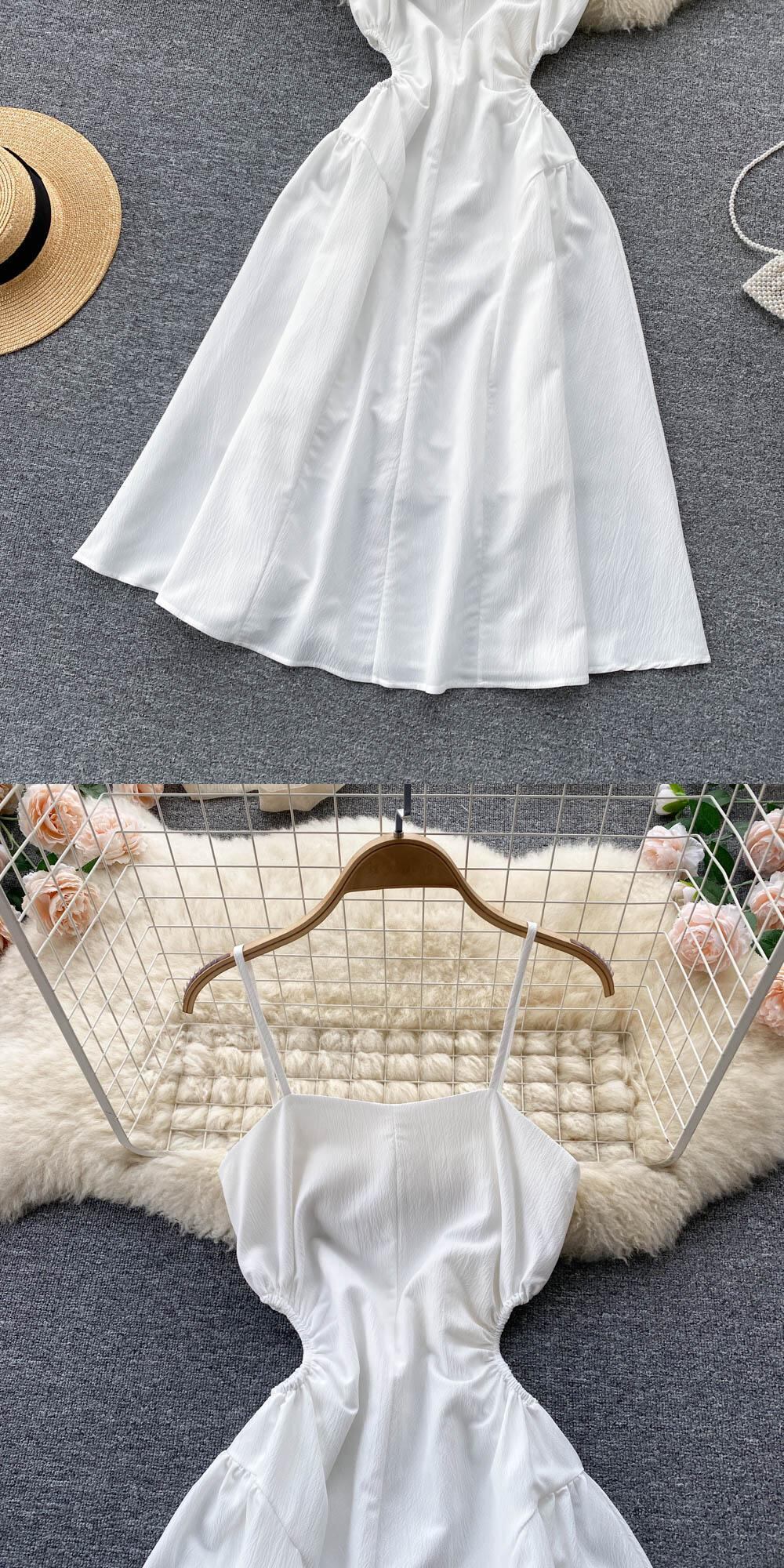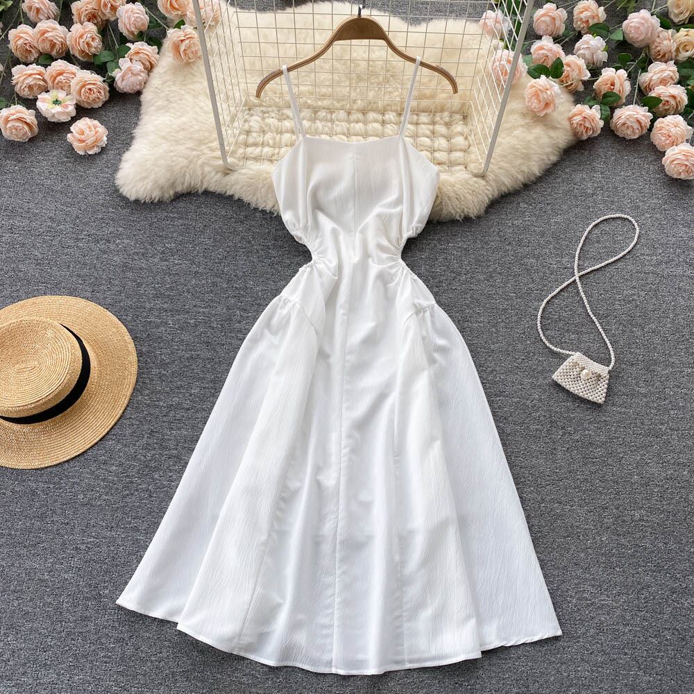 2022 summer new French pleated waist and thin suspender dress temperament bellflower tea break first love fairy skirt プリーツ サマー 夏物 スカート フラワーデザイン lyxaj76303484783