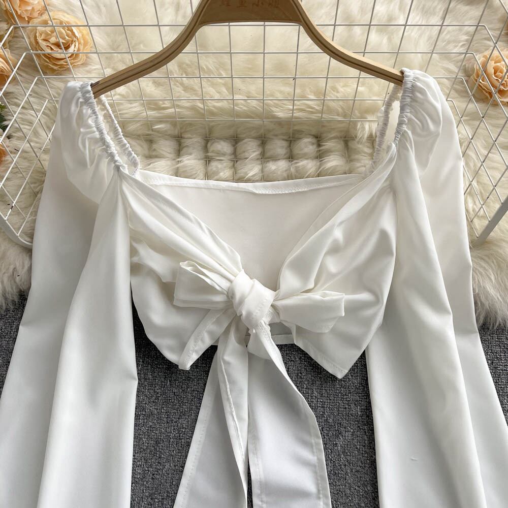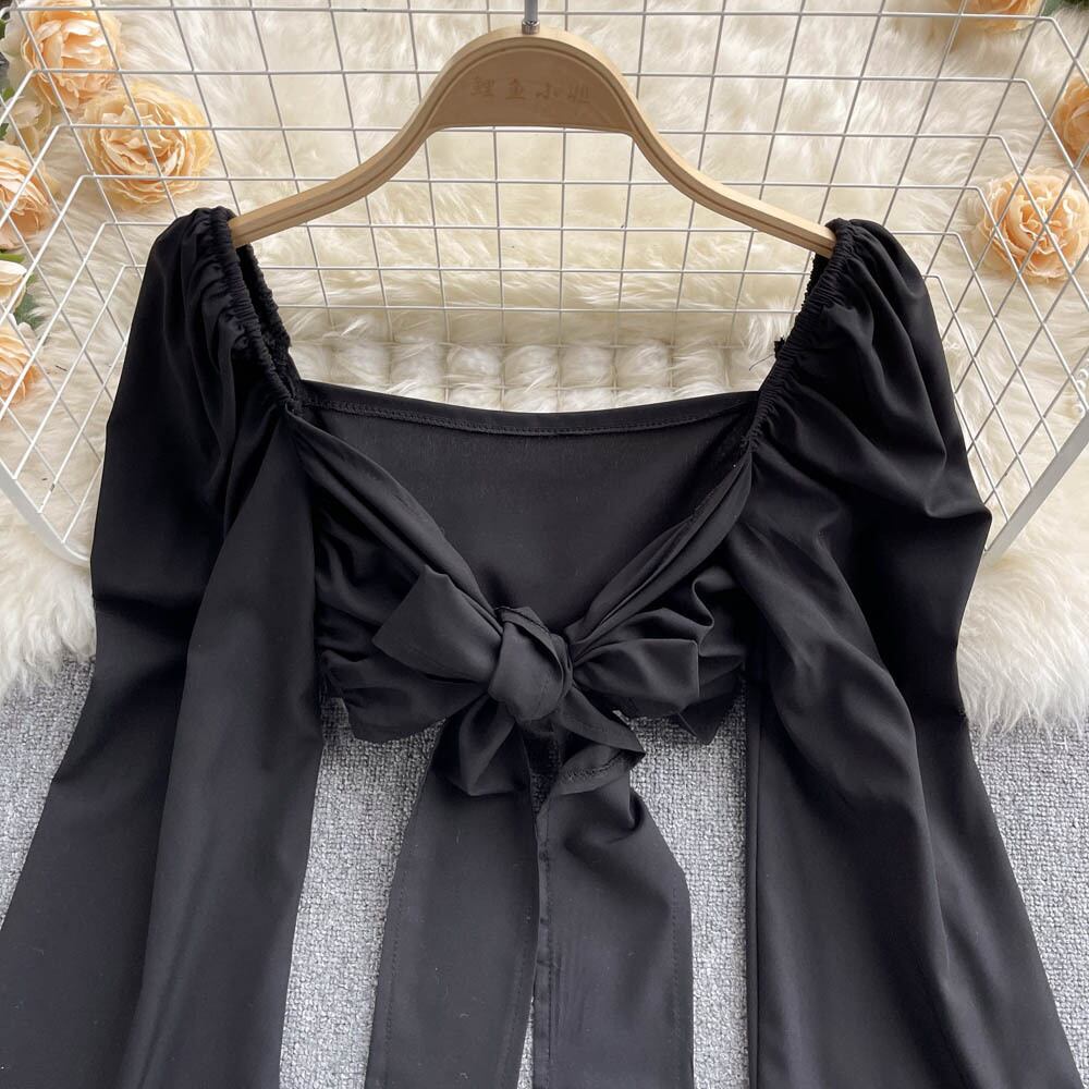 Hot fashion bandage temperament short shirt women's 2022 summer new western style age-reducing puff sleeve crop top ショート サマー 夏物 lyxaj29151013666