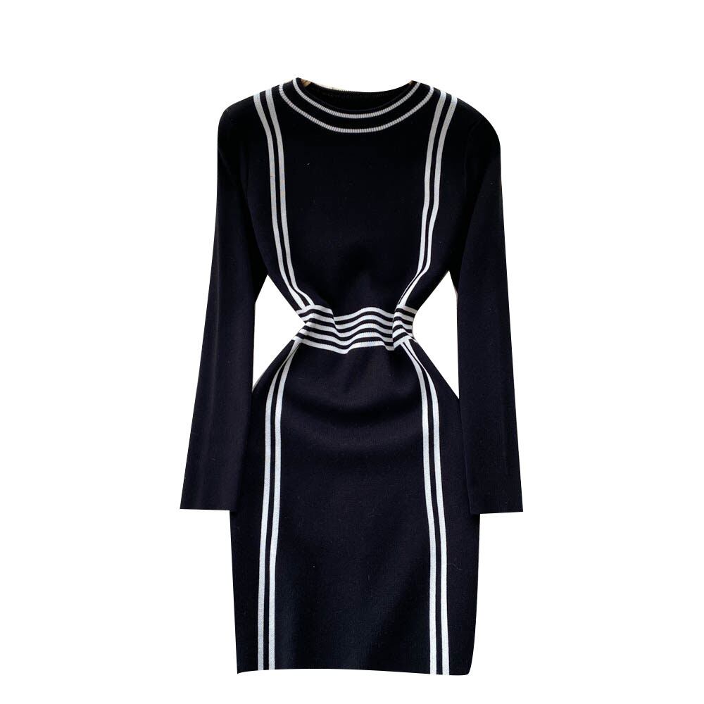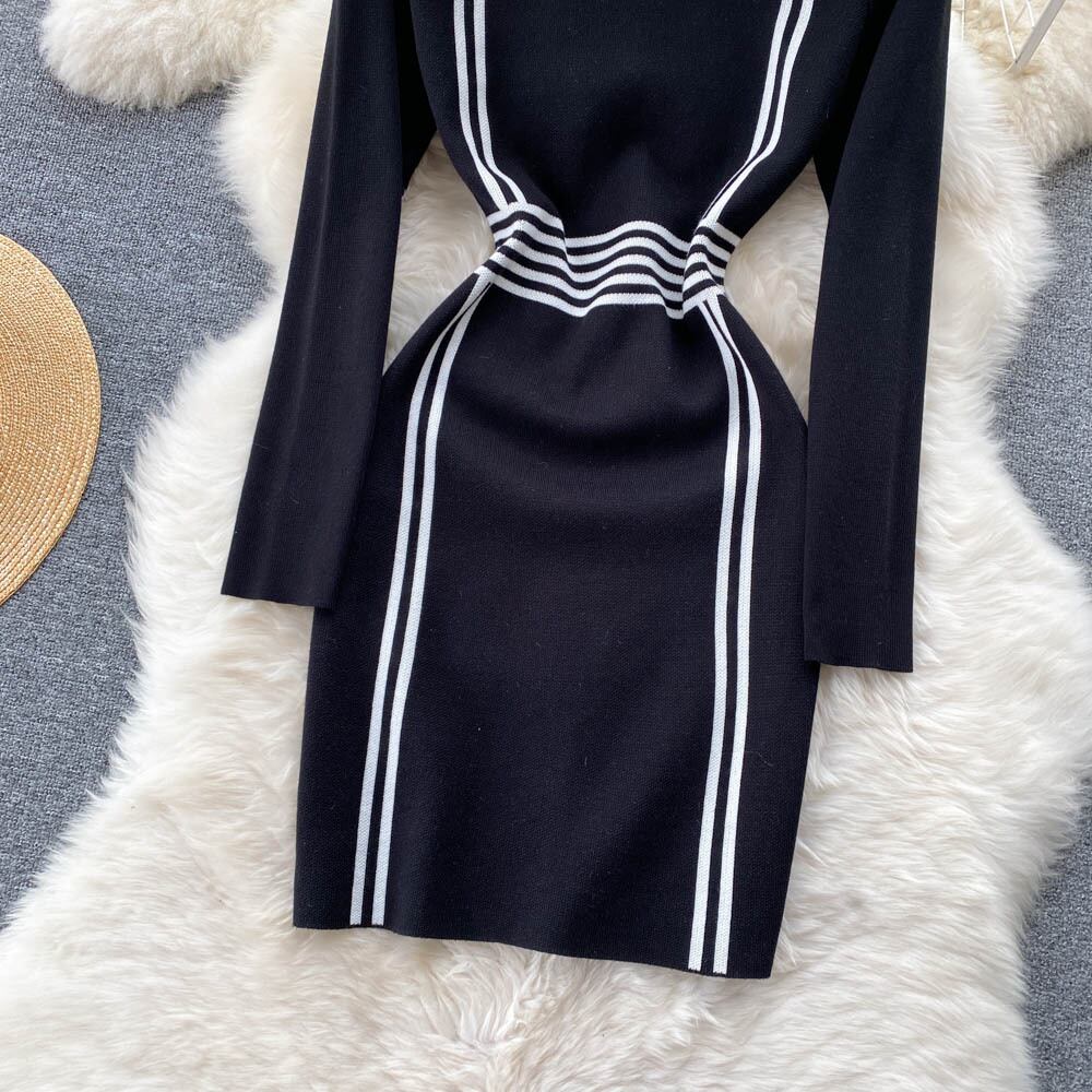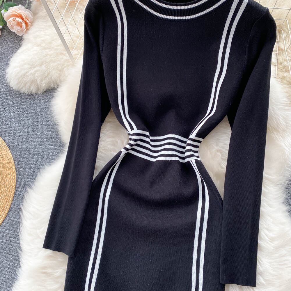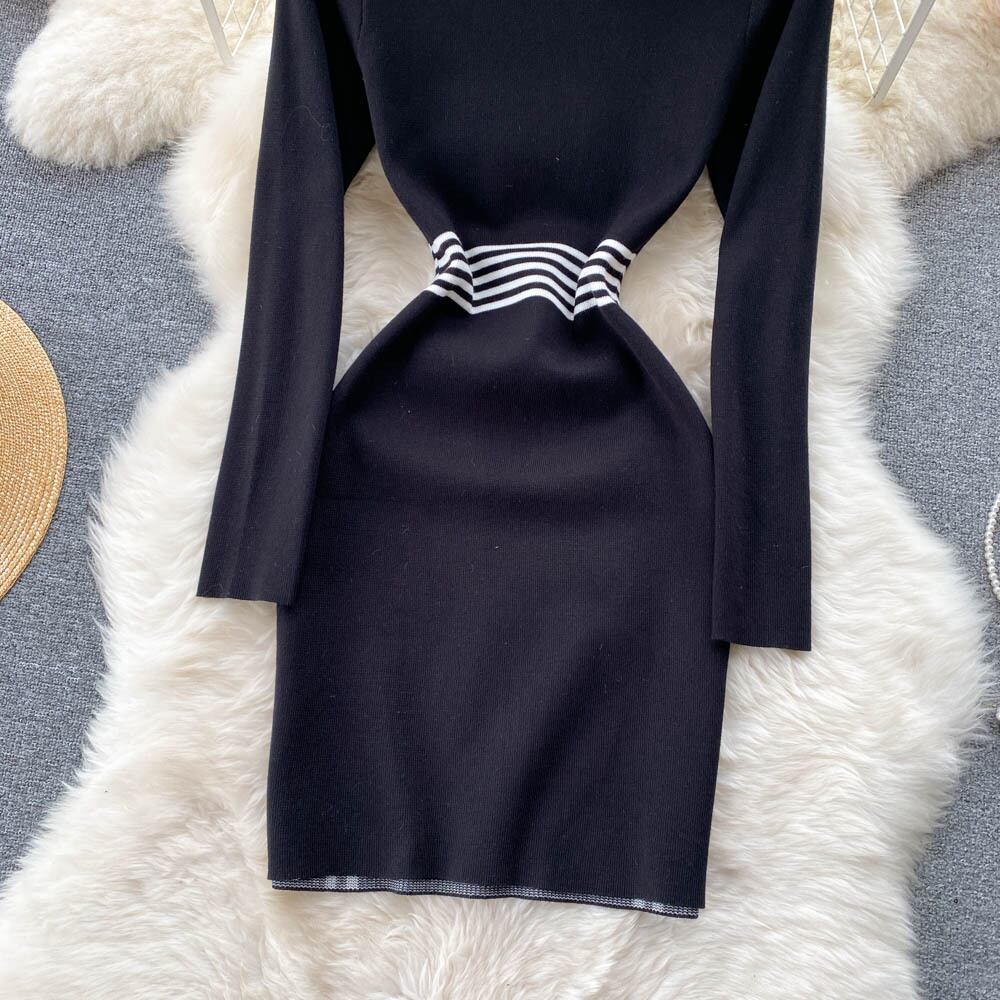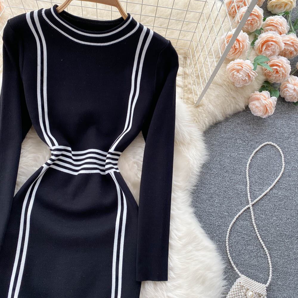 Black and white contrast color knitted bottoming dress women's autumn and winter with a coat ホワイト ブラック オータム 秋物 ウィンター 冬物 lyxaj90275612624