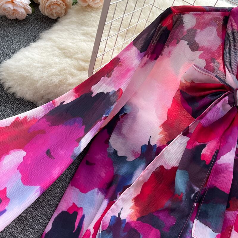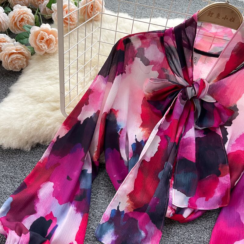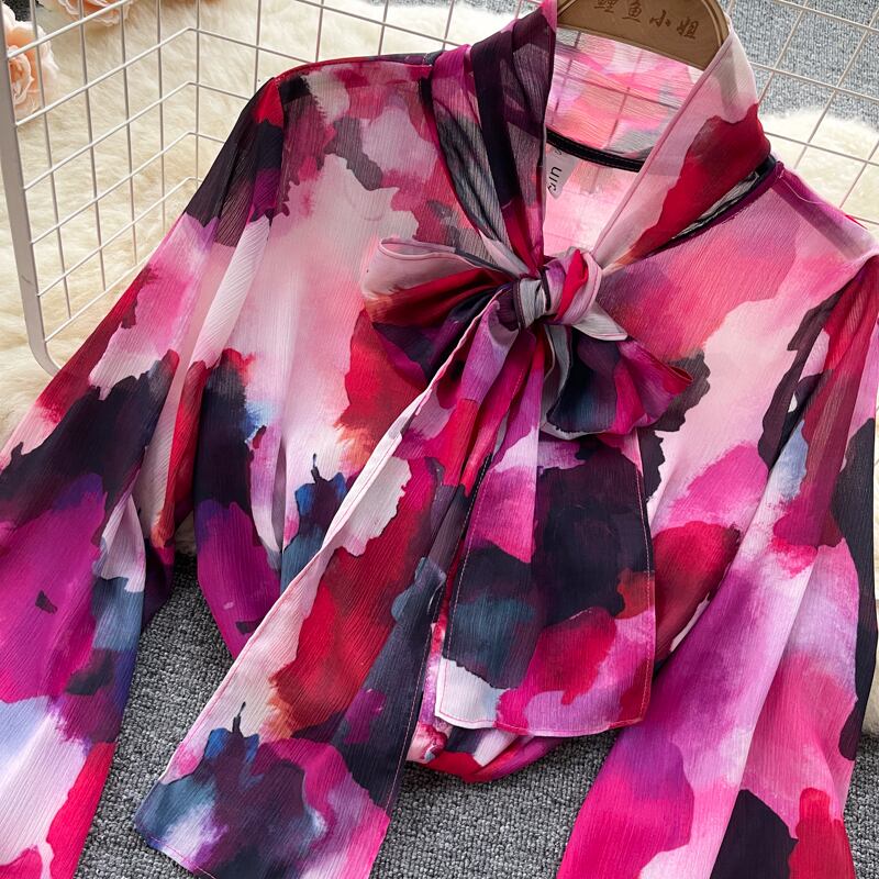 2021 autumn new niche irregular tie-dye Western-style printed shirt goddess fan temperament streamer chic shirt プリント オータム 秋物 lyxaj22702887791