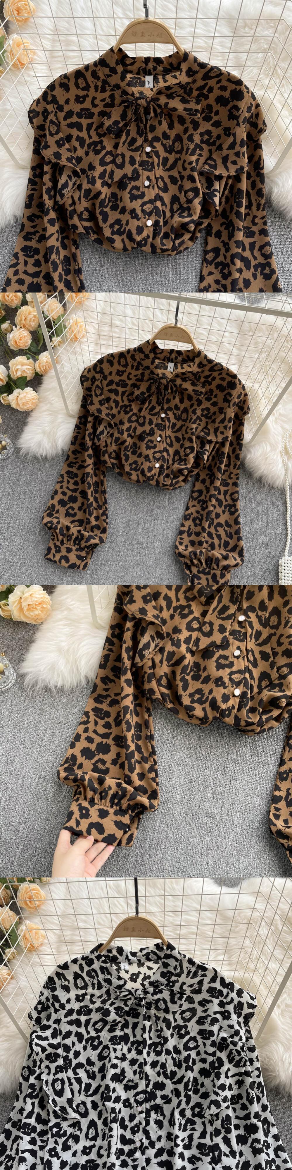 European and American retro leopard print shirt women's design sense niche loose and thin lantern sleeves all-match chiffon top trendy ランタンスリーブ シフォン レトロ ヨーロピアン lyxaj47714334138