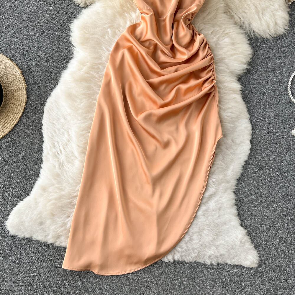 2022 summer new satin French romantic dress sweet and sexy holiday thin irregular fairy skirt 大人ガーリー スウィート キュート カジュアル サマー 夏物 スカート サテン lyxaj18860849975