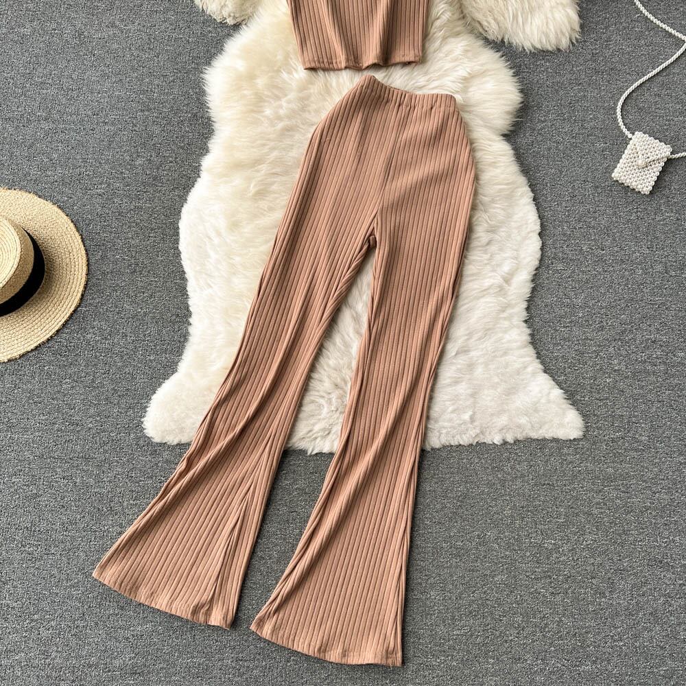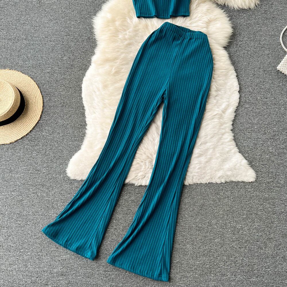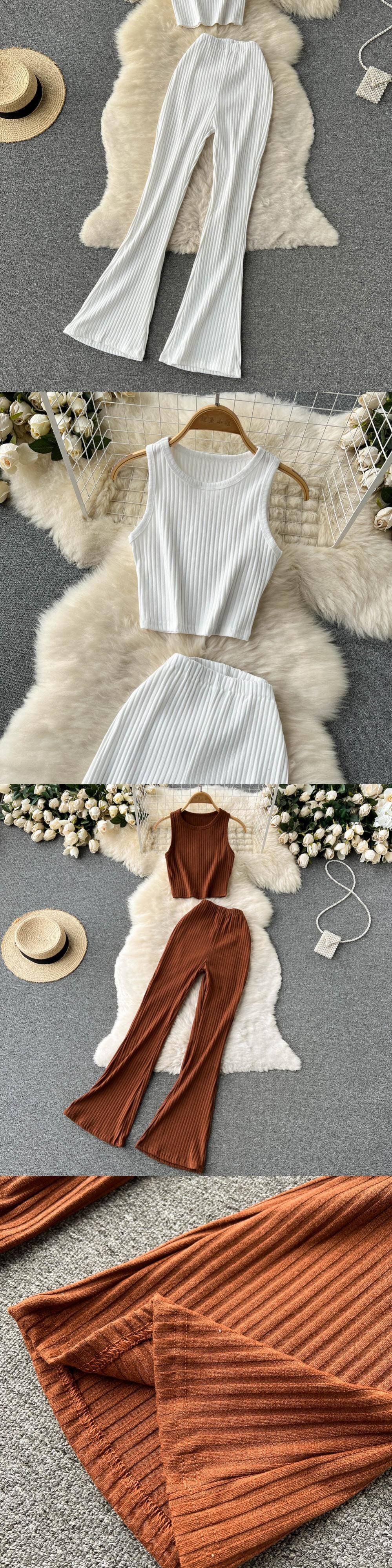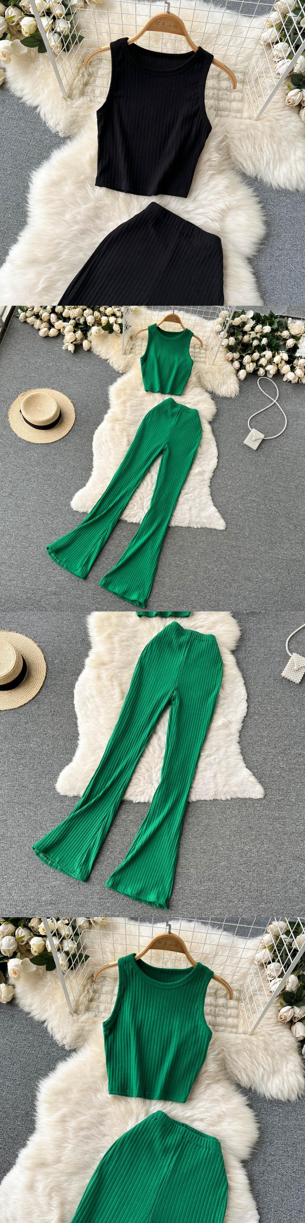 Hong Kong flavor retro new knitted suit short sleeveless top women's high waist slim trousers flared pants two-piece tide ハイウェスト ショート レッド レトロ 半袖 ハーフスリーブ ノースリーブ スリム lyxaj45366741620