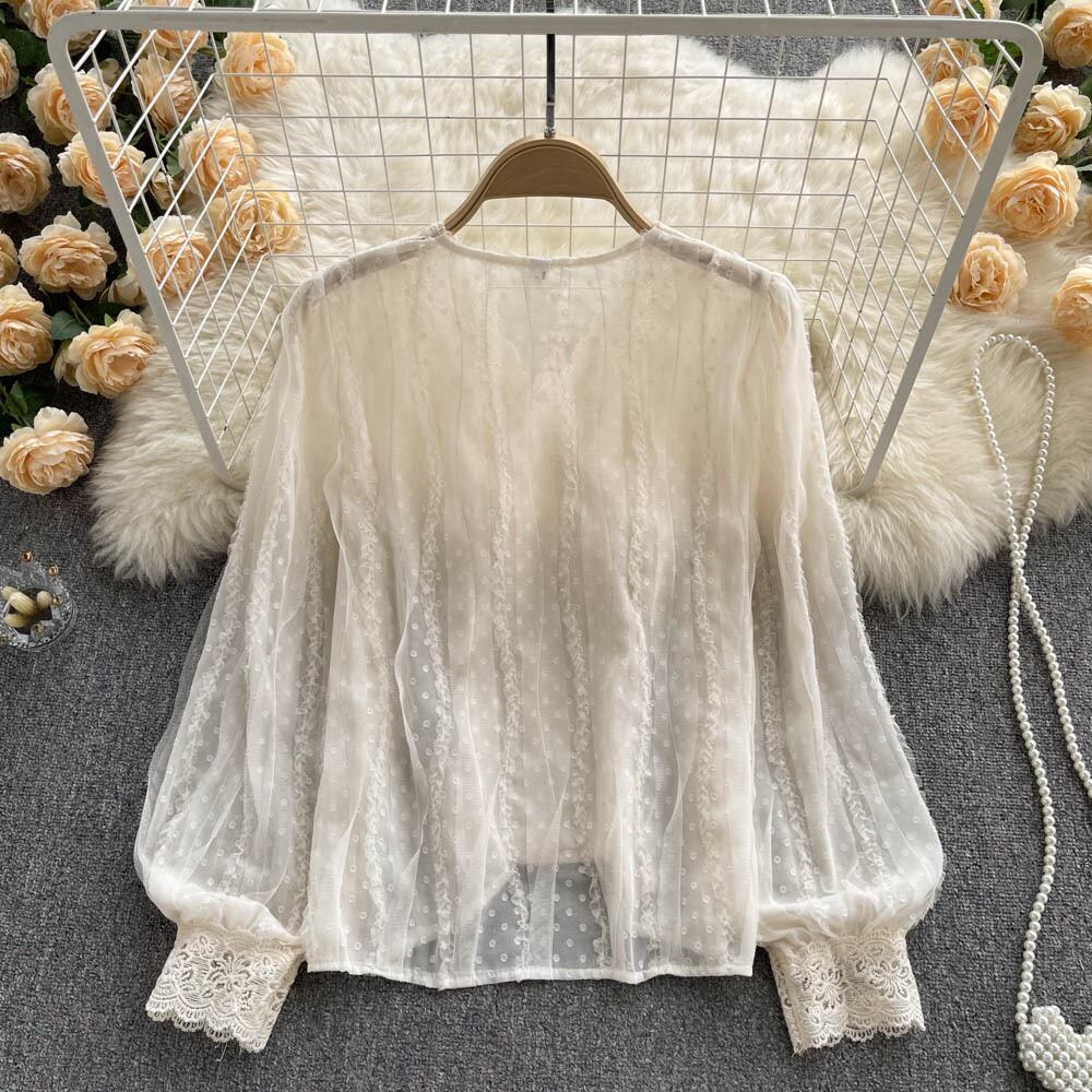 Lace shirt women's long-sleeved top spring 2022 new loose fashion fashion ruffles chic loose shirt ロング レース フリル ラッフル スプリング 春物 lyxaj18478786830