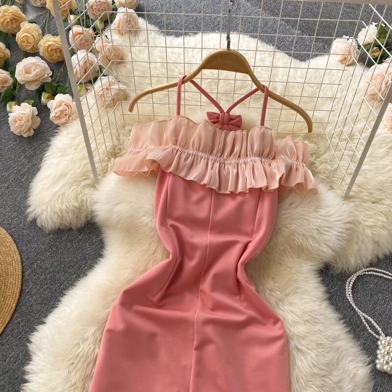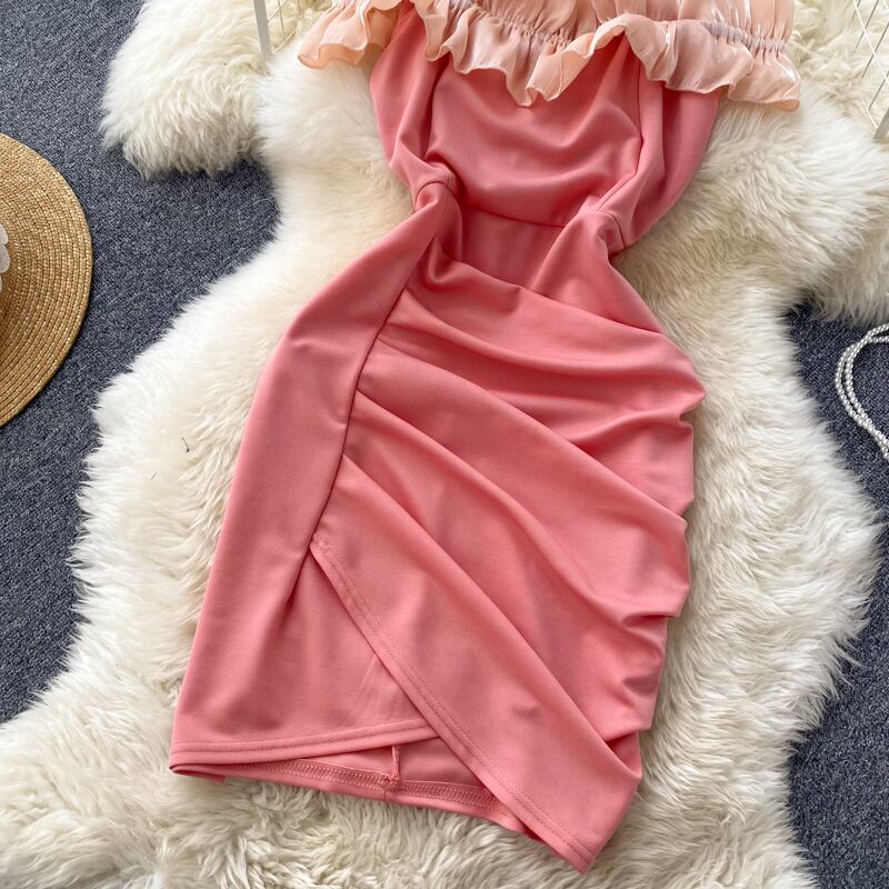 Light familiar lady Royal sister Fan temperament one-shoulder lotus leaf edge color matching split high waist slim dress dress summer ハイウェスト サマー 夏物 スリム lyxaj20726637230