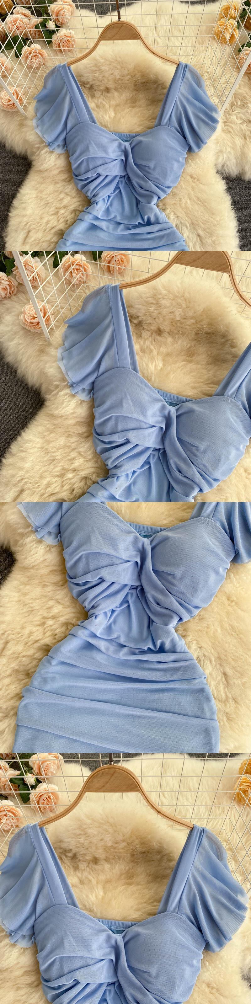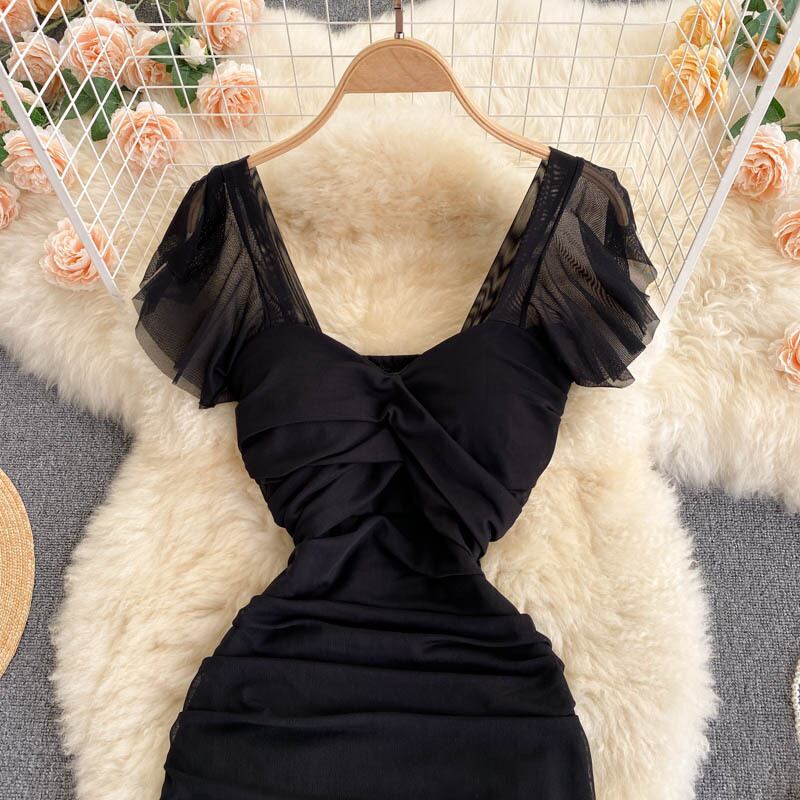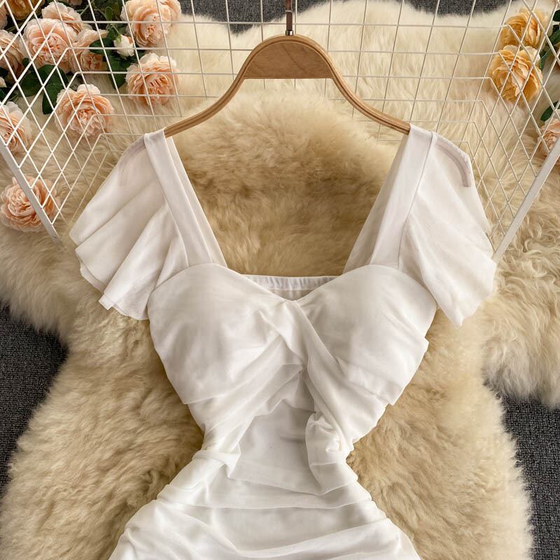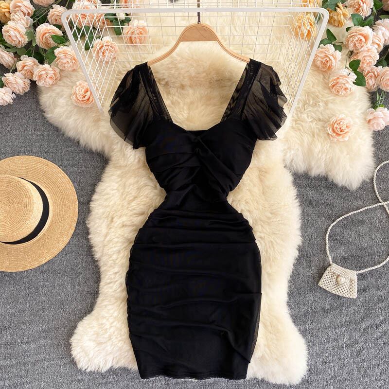 Nightclub women's clothing 2021 new trendy folded slim short sexy package hip skirt sweet flying sleeve dress ショート 大人ガーリー スウィート キュート カジュアル スカート スリム lyxaj34092622640