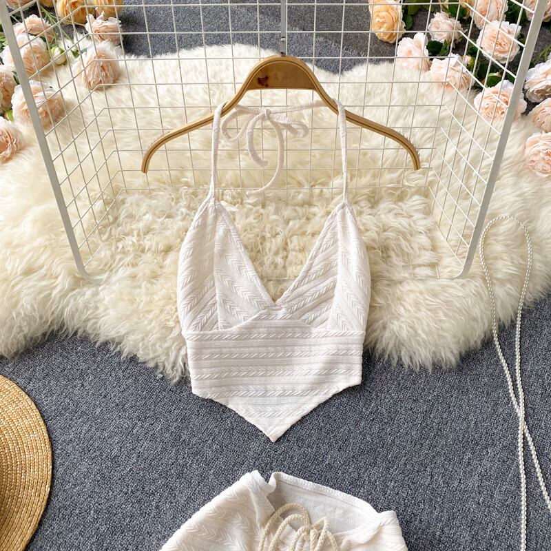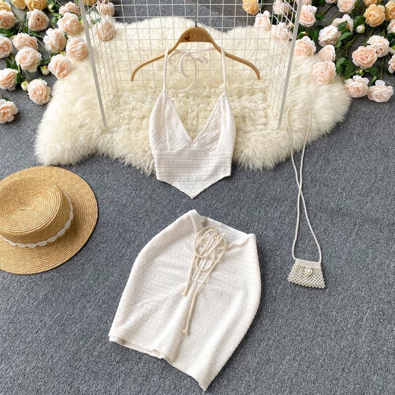 version of women's small halter neck tie short tube top top + high waist drawstring half body hip skirt two-piece set ハイウェスト ショート スカート lyxaj46869459337