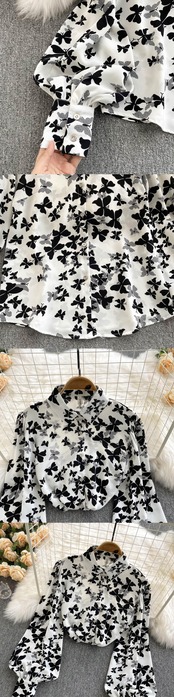 French temperament polo collar shirt women's new 2021 western style fashion printing loose and thin puff sleeve top lyxaj10010480952