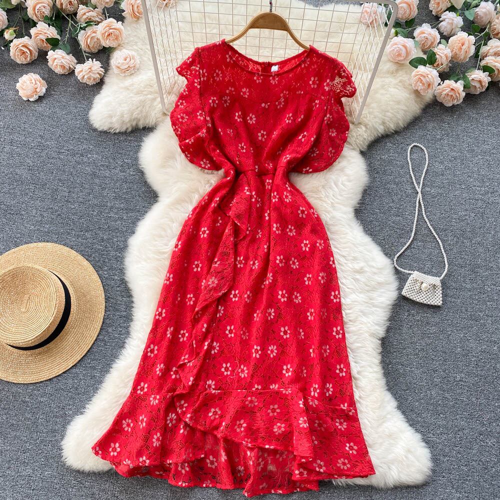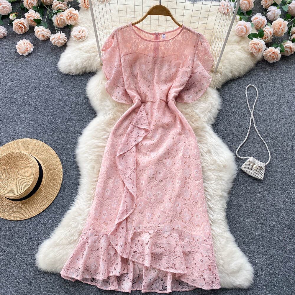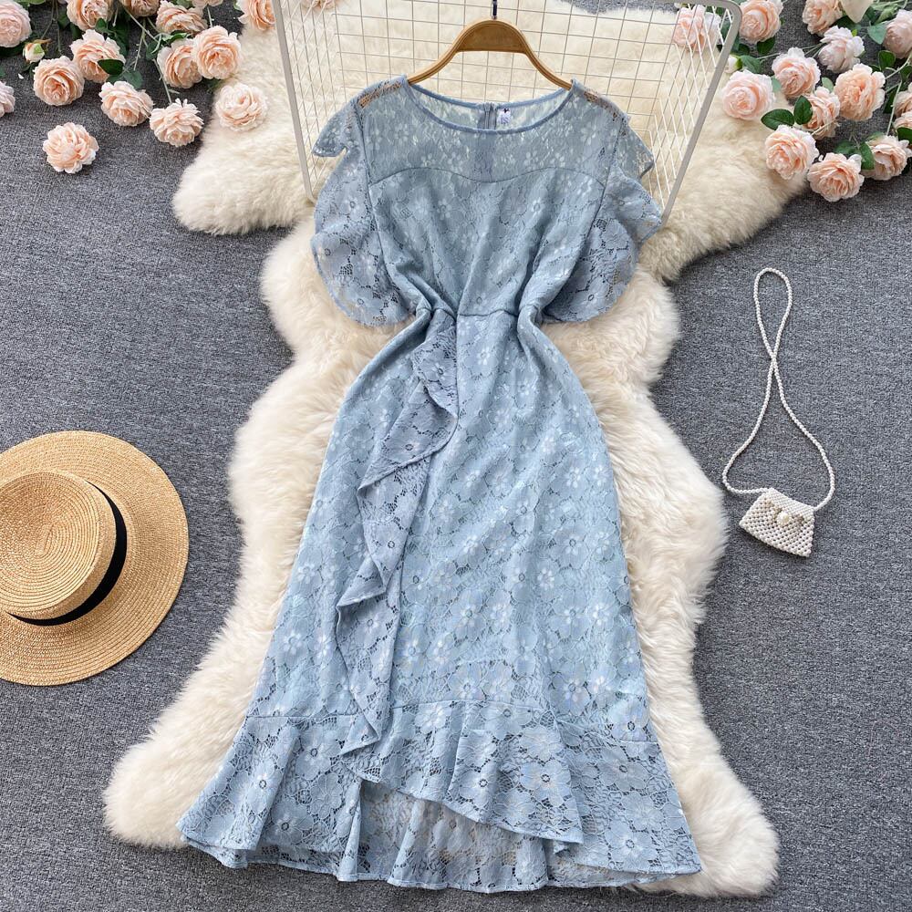 Fairy dress summer dress 2022 new design sense niche chic lace irregular fishtail chiffon long skirt ロング シフォン レース サマー 夏物 スカート lyxaj40920125910