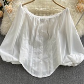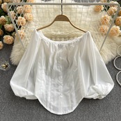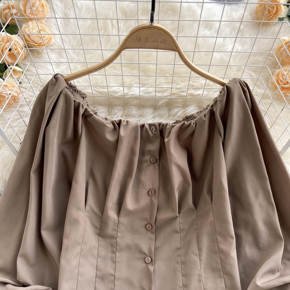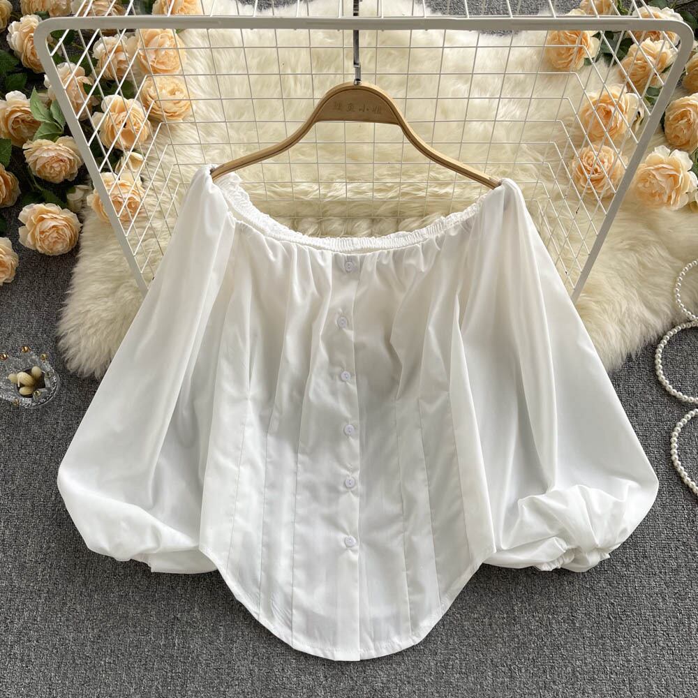 Temperament one word collar puff sleeve top women's design sense niche super fairy eign style all-match loose and thin French shirt lyxaj16614262265