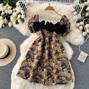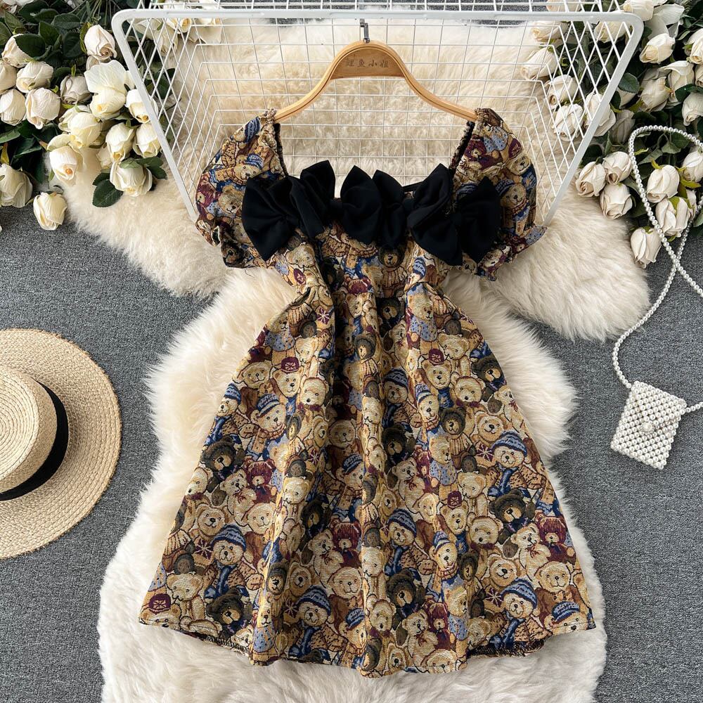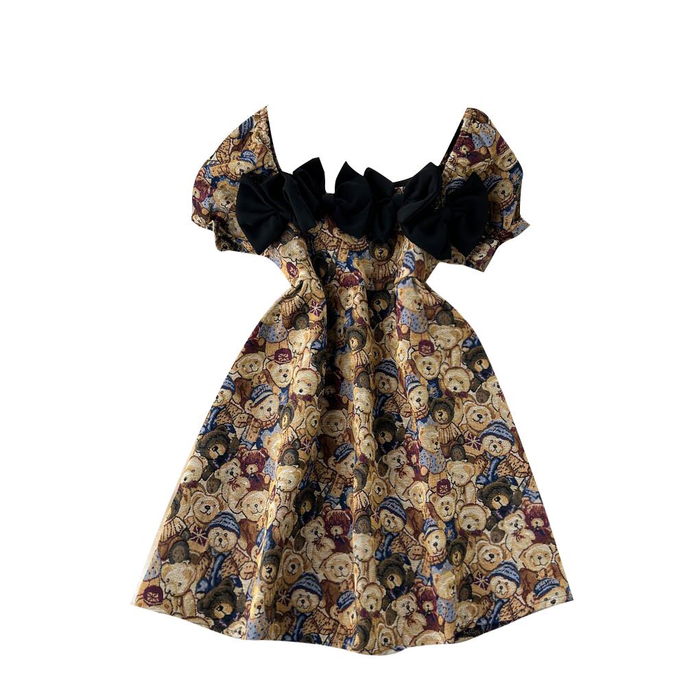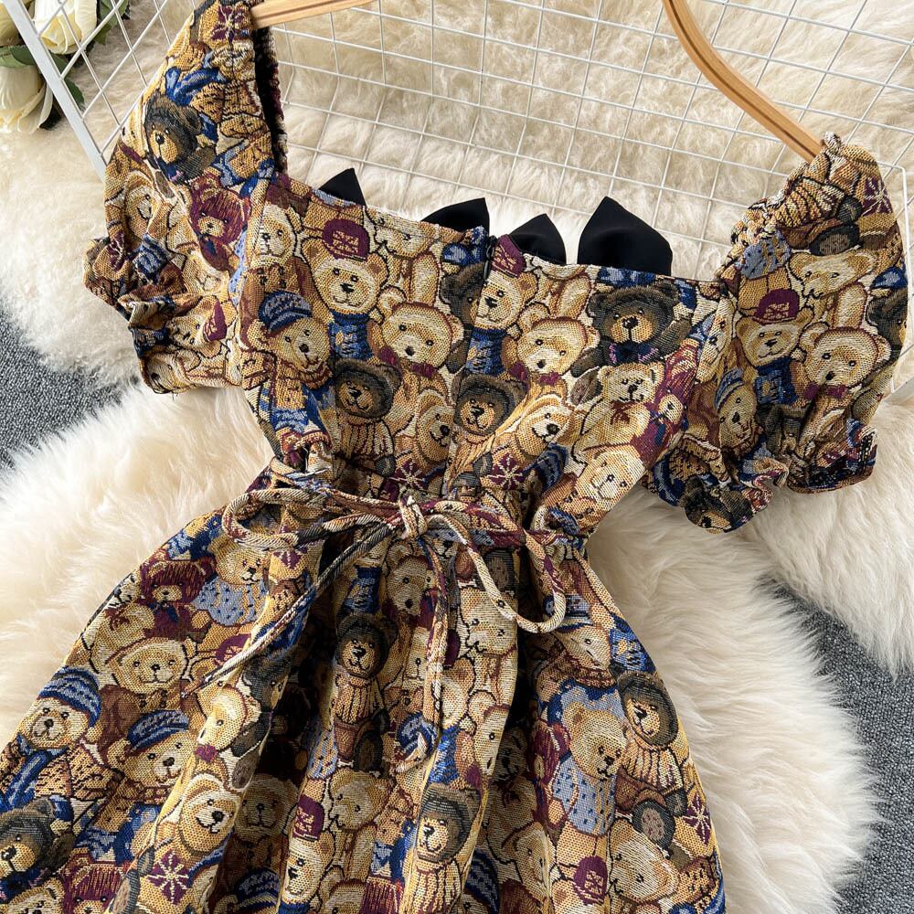 Summer 2022 new French retro bear temperament puff sleeve skirt waist thin thin dress female レトロ サマー 夏物 スカート lyxaj34642478040