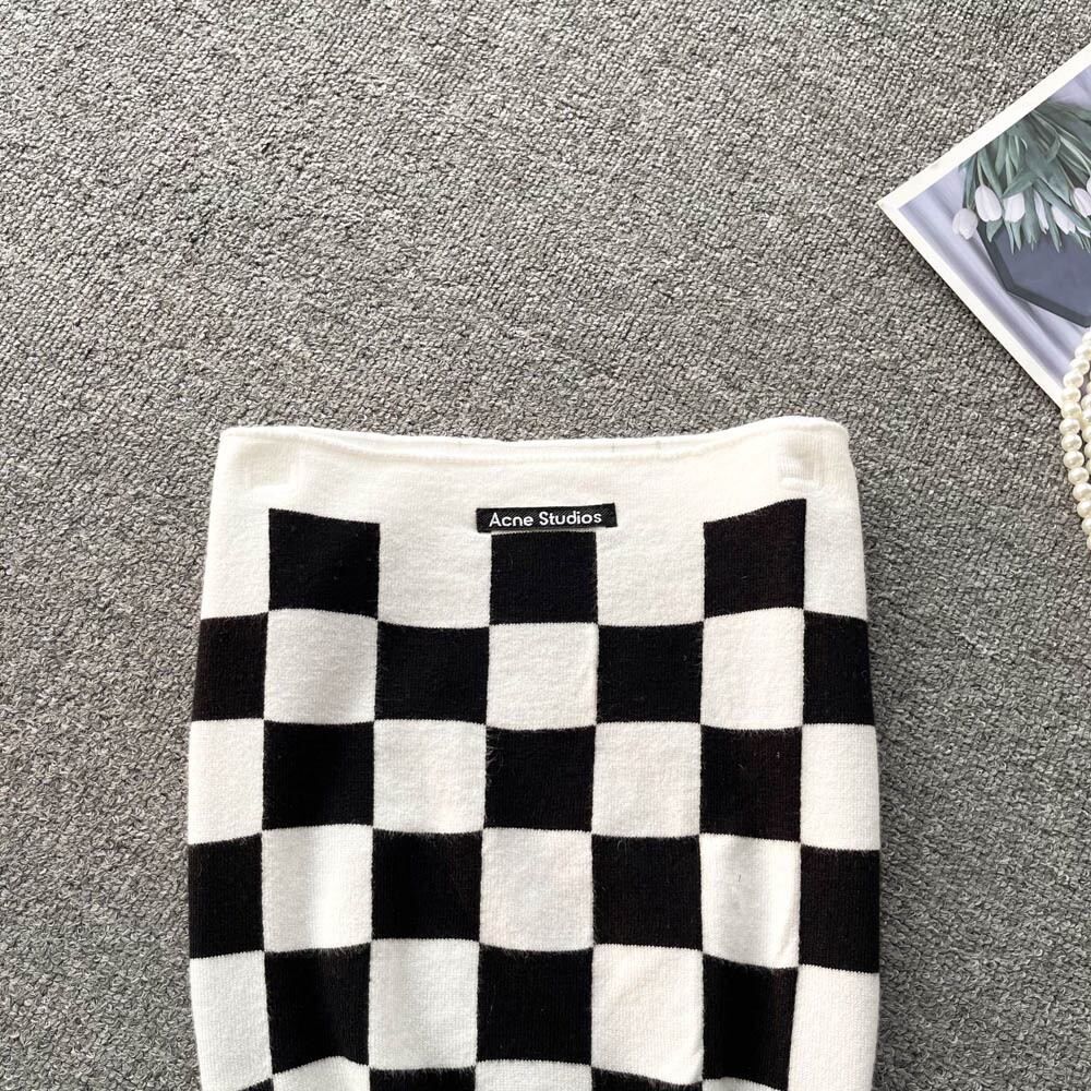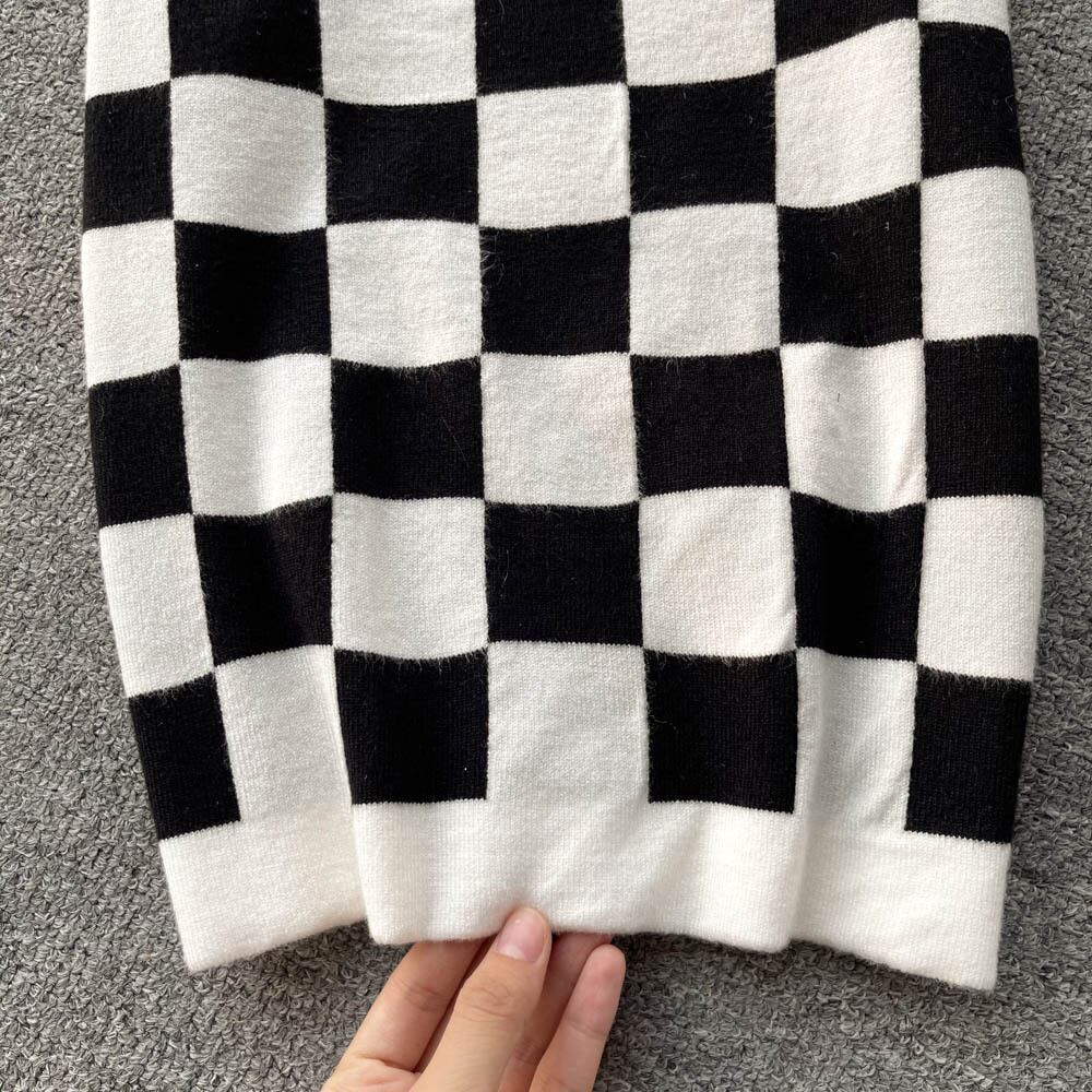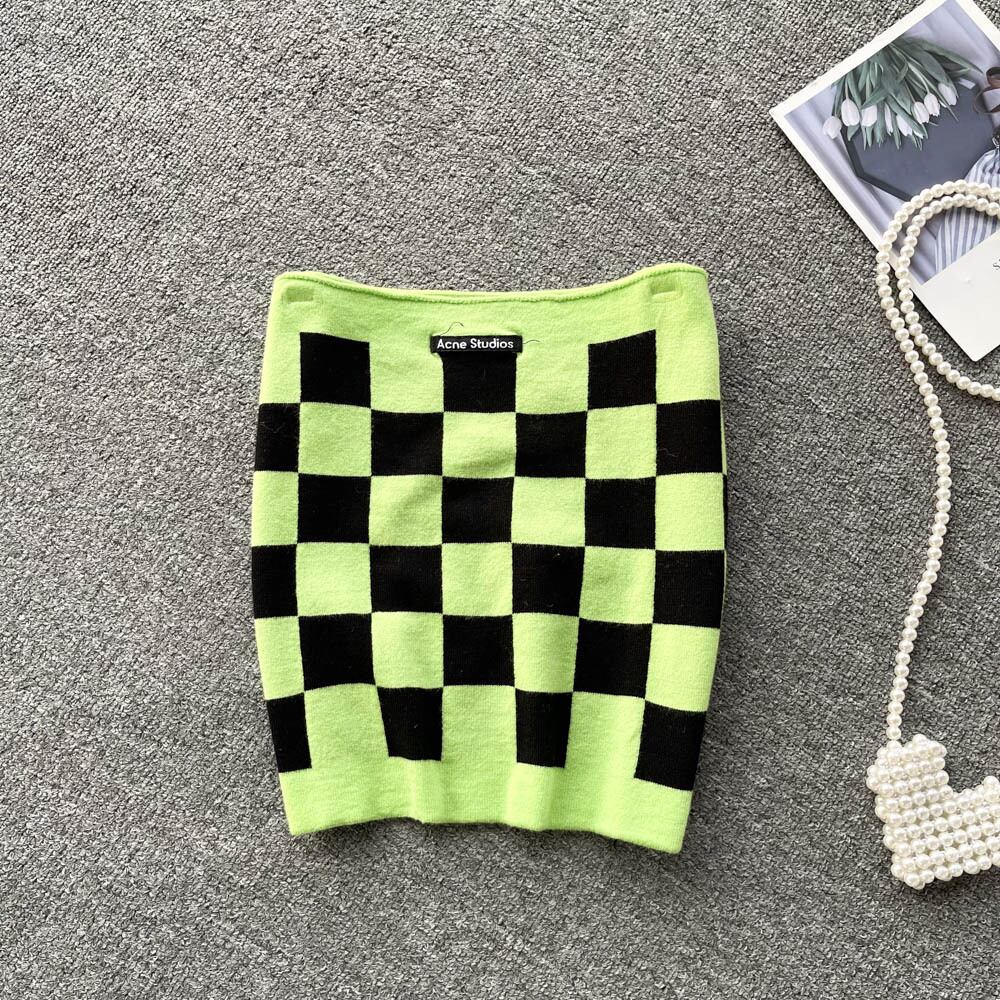 Anti-glare checkerboard plaid short knitted vest women's inner wear with a sense of design niche outside wear fashionable tube top top trend ショート lyxaj99079060584