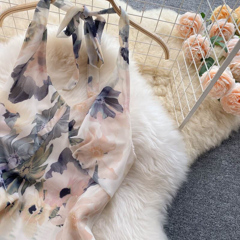 Celebrity style skirt high-end women's seaside holiday skirt design sense printing slim mid-length halter dress スカート スリム lyxaj13354715684