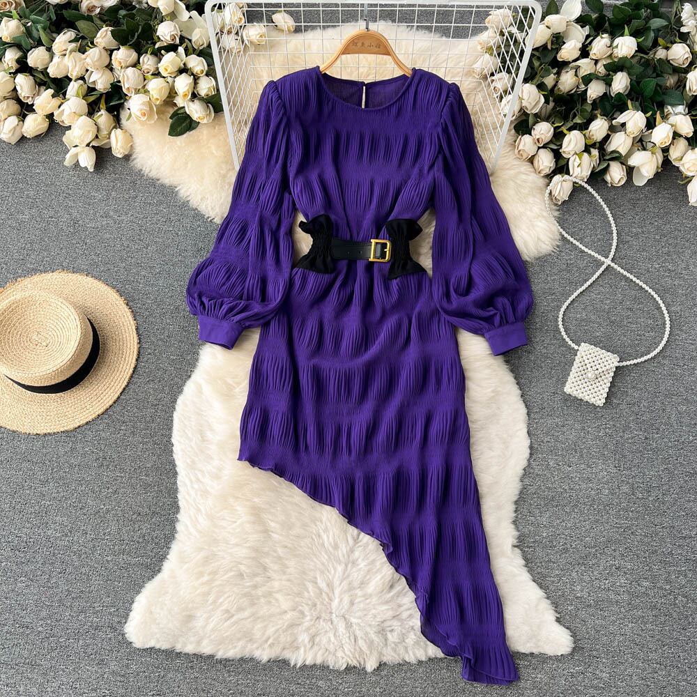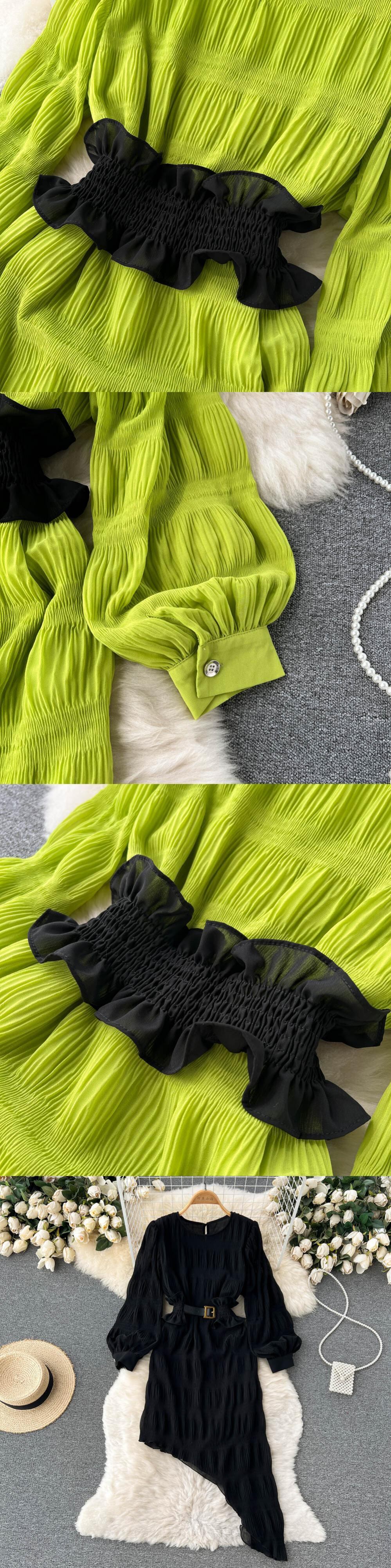 French waist dress women's spring dress Hepburn style niche design small irregular chiffon long skirt trend ロング シフォン スプリング 春物 スカート lyxaj61691118929