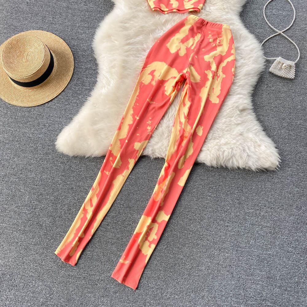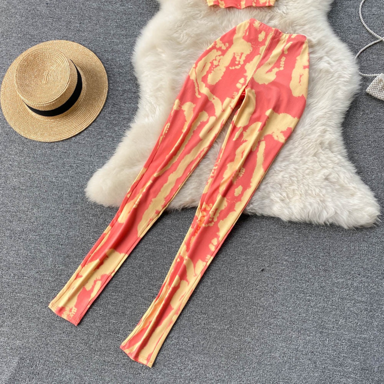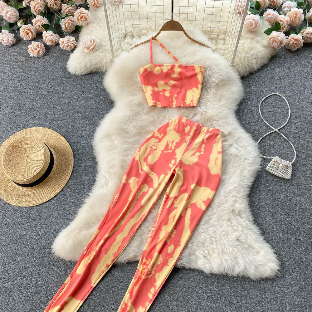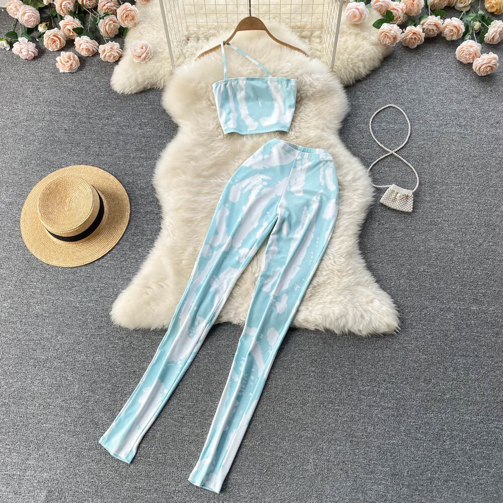 Hot pure desire sexy casual bottoming knitted tube top wrap chest top long pants suit female two-piece tide ロング カジュアル ピュア lyxaj2745049054