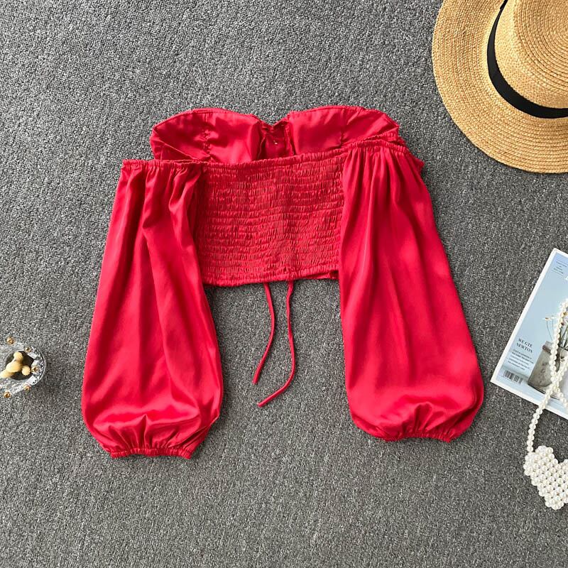 European and American ins tops women's summer dress 2021 new sexy tube top slim short puff sleeve satin small shirt tide ショート サマー 夏物 サテン スリム ヨーロピアン lyxaj42378154426