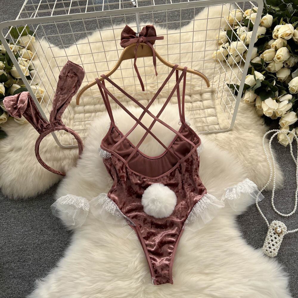 2022 summer new sexy cute pink pure desire wind suit bunny velvet one-piece unim suit tide ピンク 大人ガーリー スウィート キュート カジュアル サマー 夏物 ピュア lyxaj82075268953
