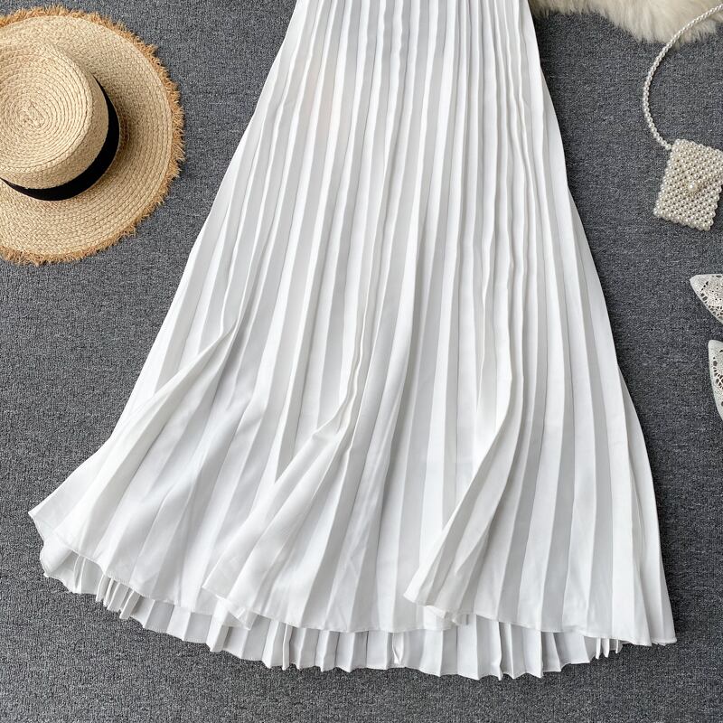 Seaside holiday dress 2020 new summer design organ pleated sexy backless color matching suspender skirt プリーツ サマー 夏物 スカート lyxaj31396997879