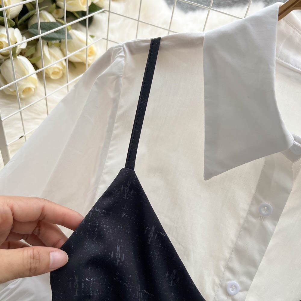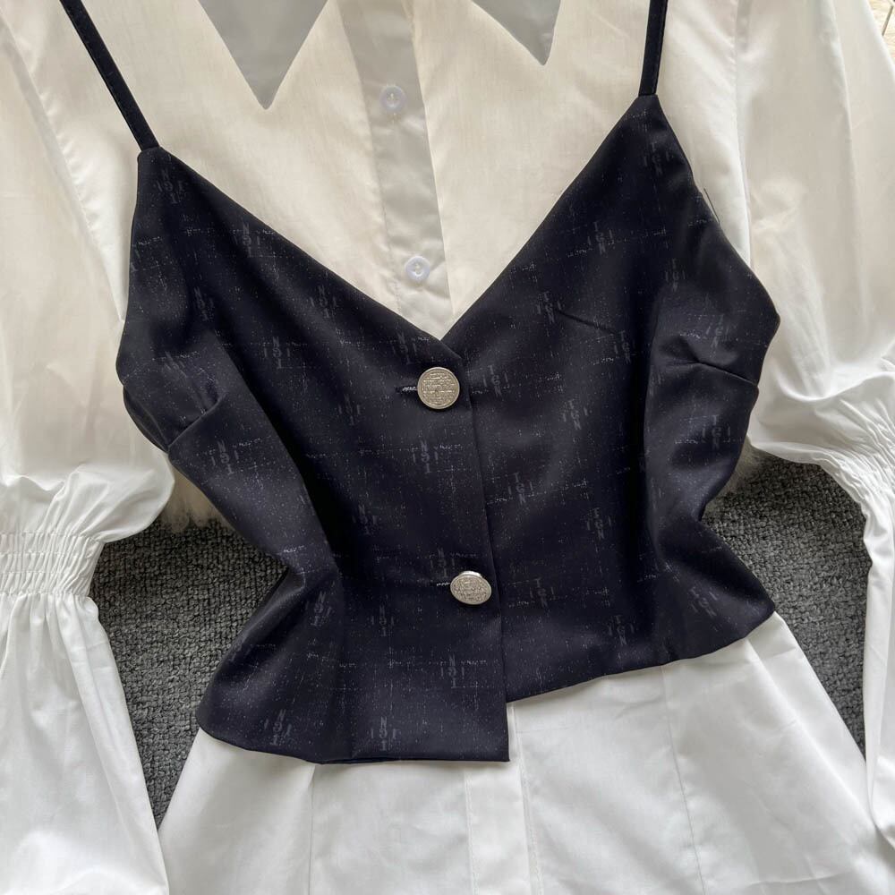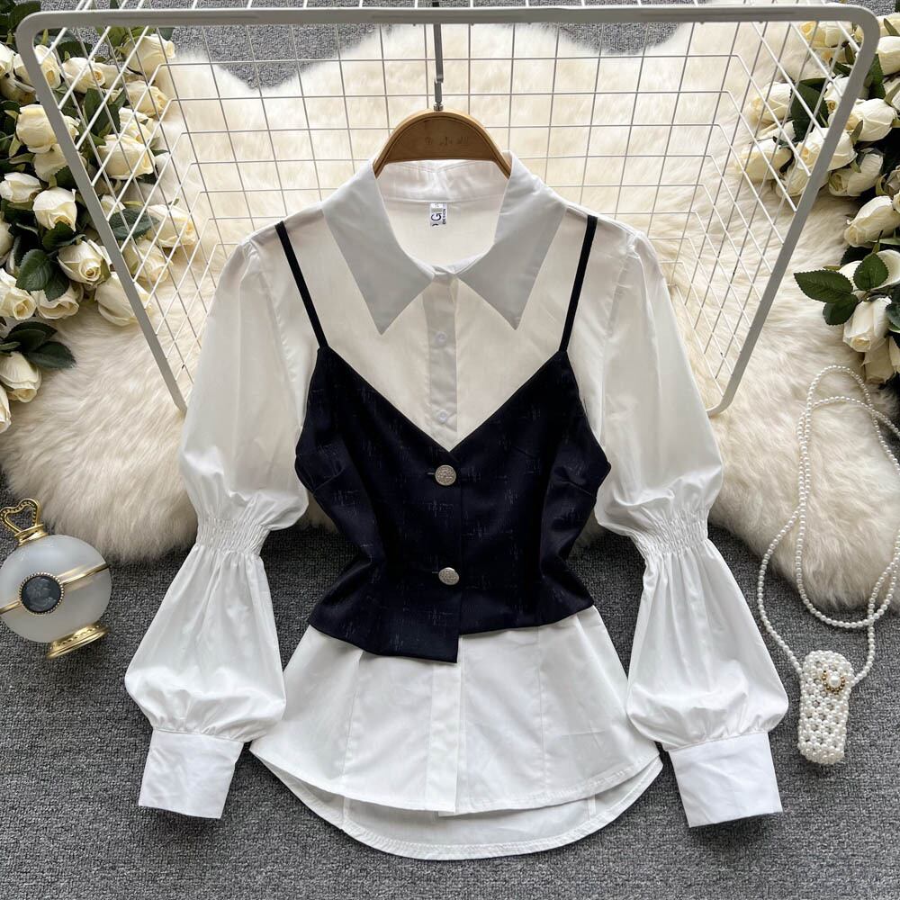 Small sling Western style lapel long-sleeved white shirt women's spring new fake two-piece loose eign retro shirt tide ロング ホワイト レトロ スプリング 春物 lyxaj61337256876