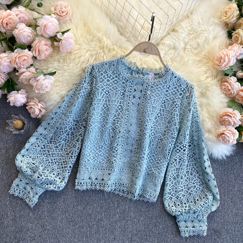 Palace style top women's spring 2021 new style hollow lace puff sleeve pullover shirt women's all-match レース スプリング 春物 lyxaj27851057281