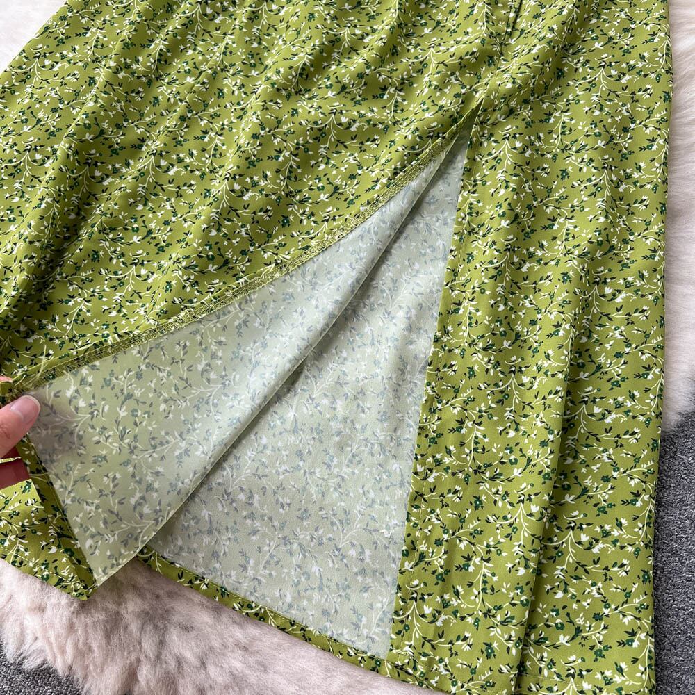 Floral dress version 2022 summer new temperament square collar waist high waist slim mid-length slit skirt ハイウェスト サマー 夏物 花柄 スカート スリム スクウェア lyxaj24967817719