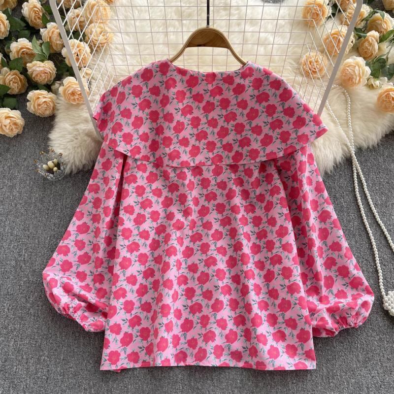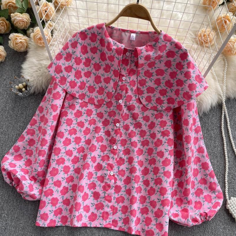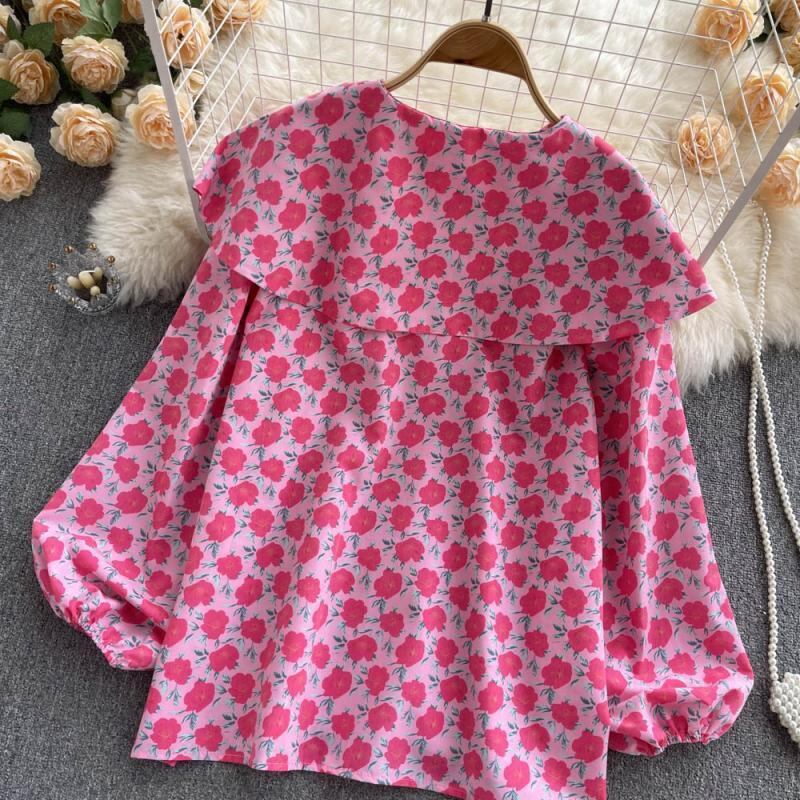 2022 Spring Simple Style Chiffon Top Retro Puff Sleeves Loose Thin Floral Chic Shirt Tide シフォン レトロ スプリング 春物 花柄 lyxaj65332726468
